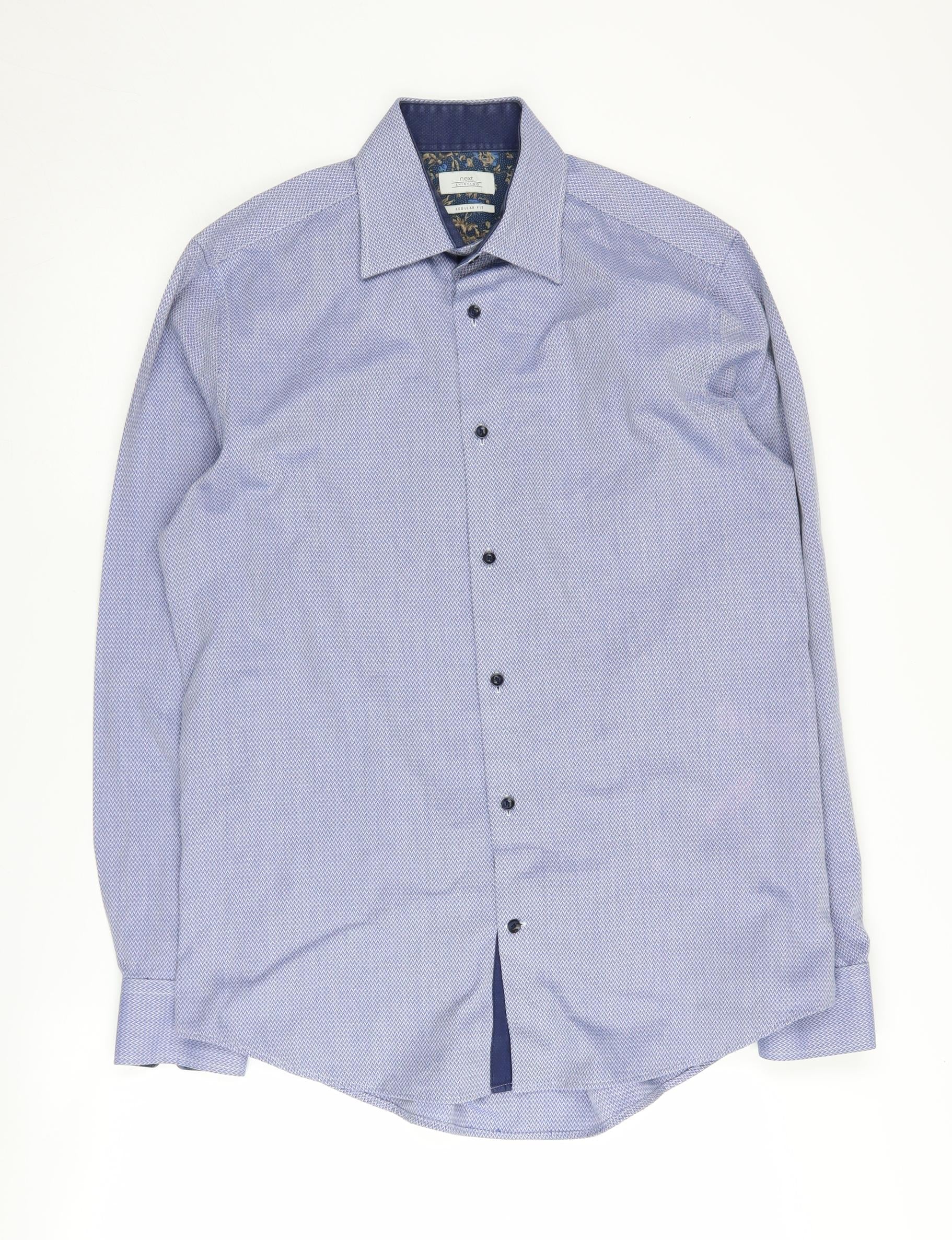 Next Men's Blue Geometric Button-Up Shirt Size 15.5