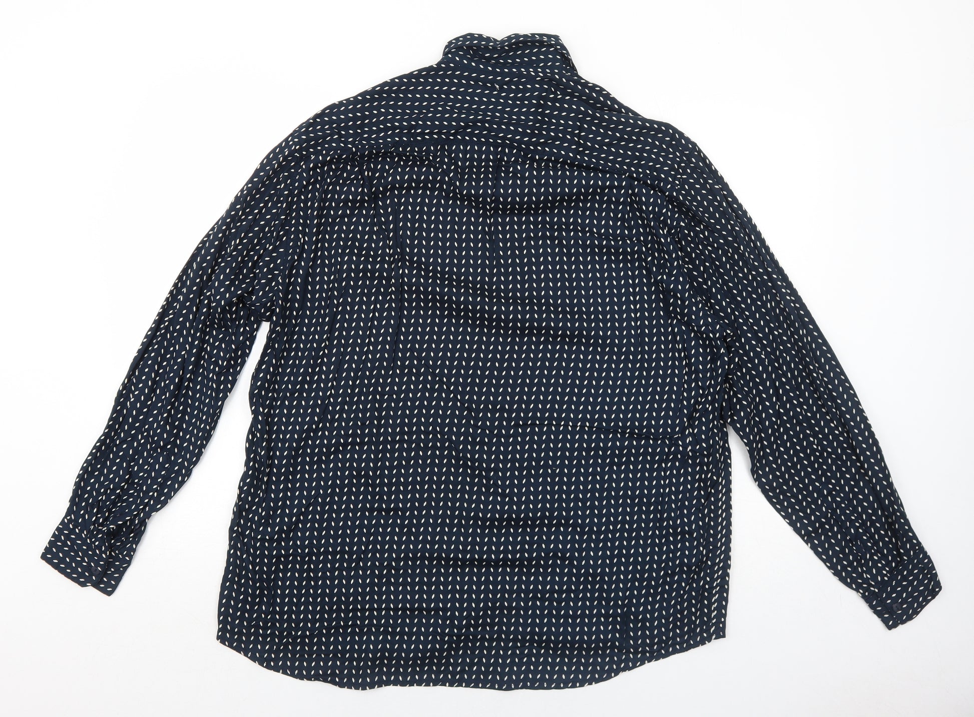Mens Blue Geometric Viscose Button-Up Size M Collared Button