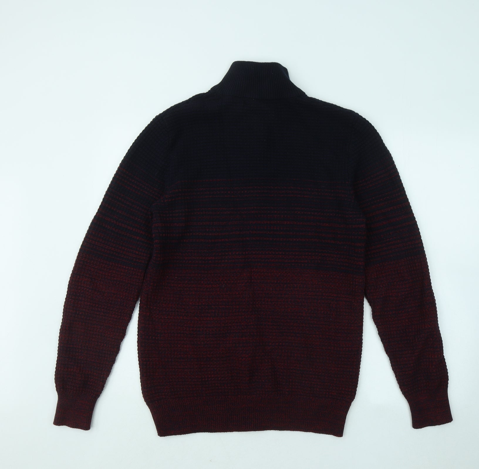 Mens Blue Mock Neck Cotton Pullover Jumper Size M