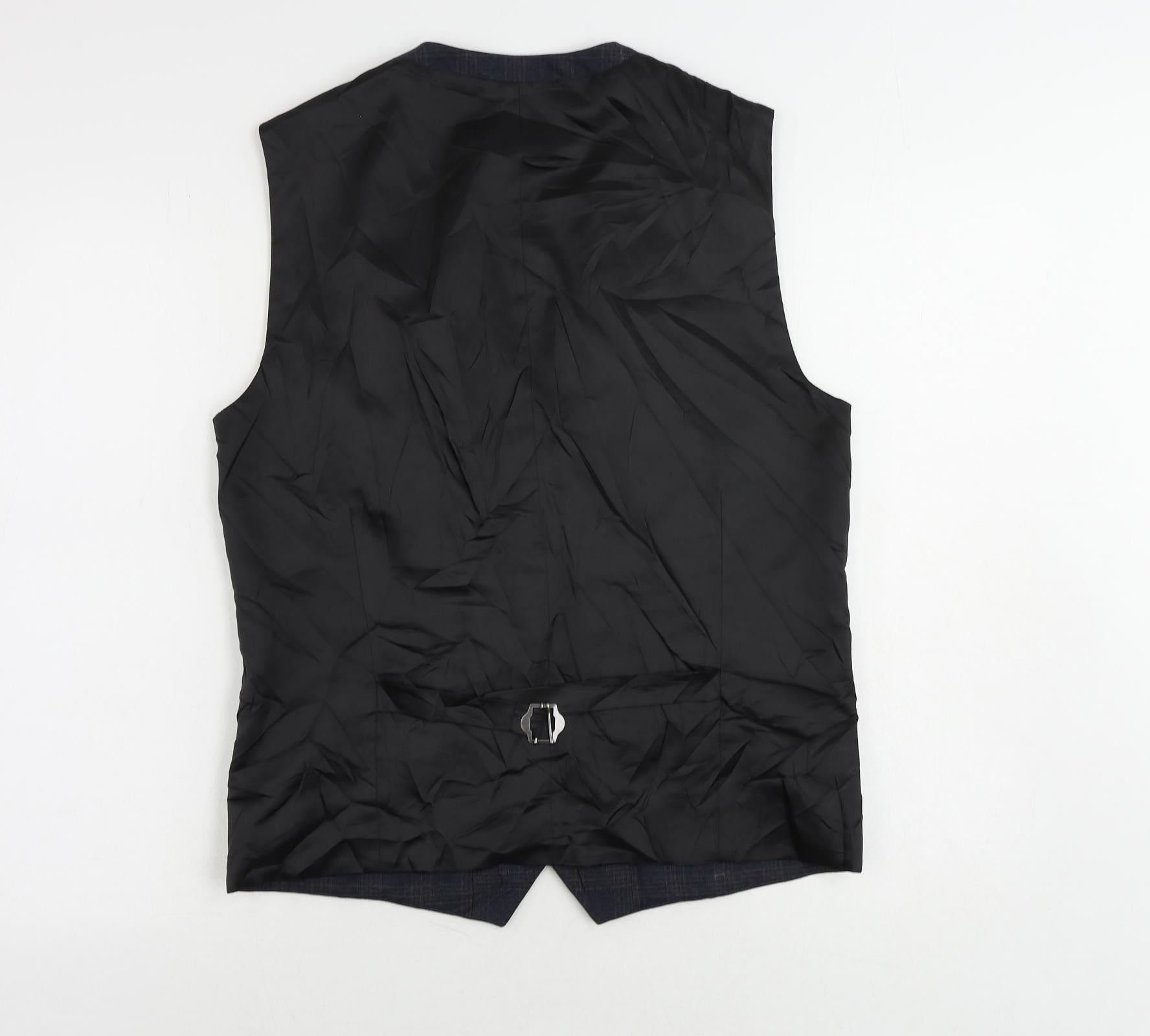 Mens Blue Plaid Polyester Jacket Suit Waistcoat Size 40 Regular