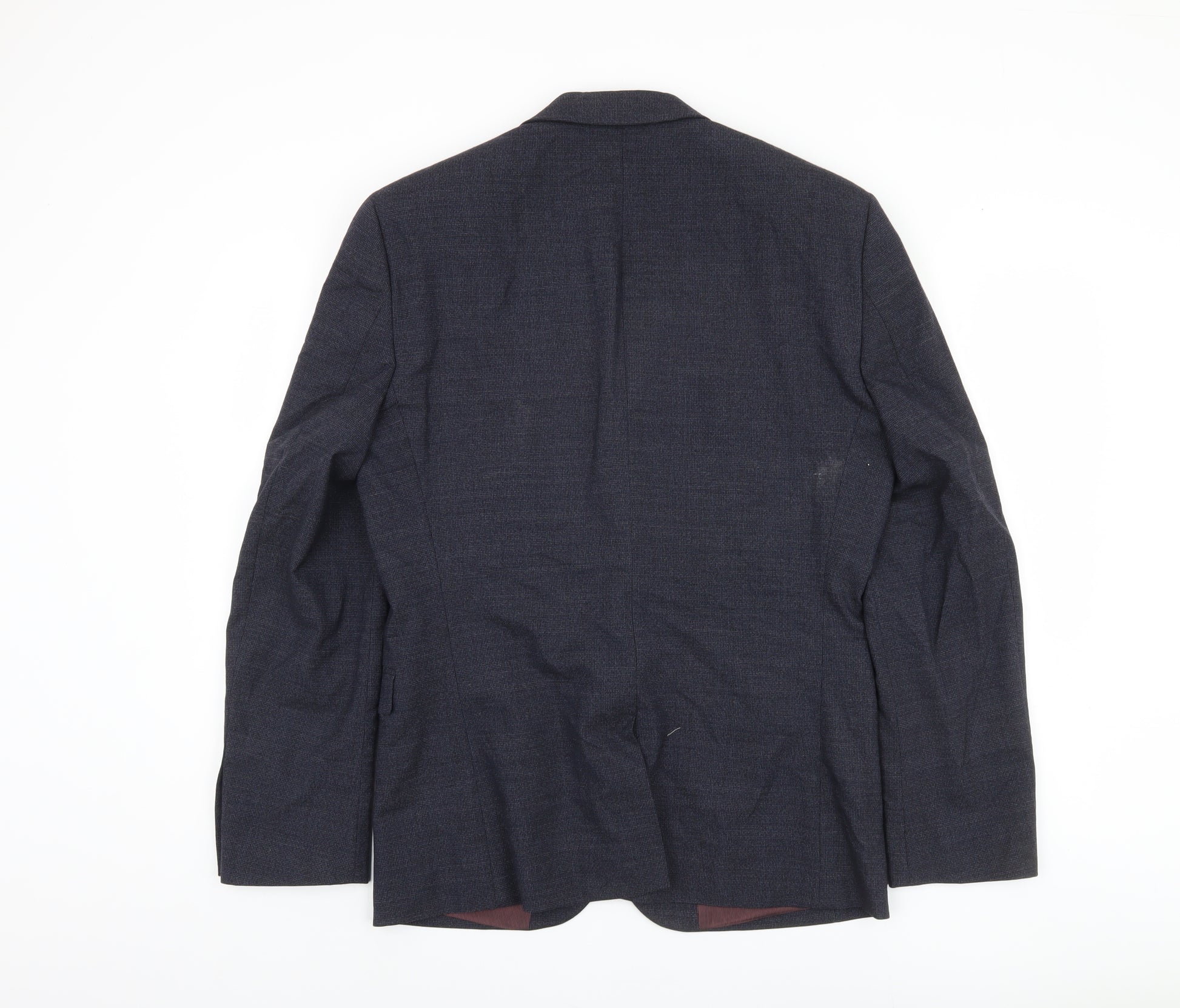 Step into sophistication with this Next Men's Suit Jacket, a perfect choice for the discerning gentleman. Crafted using a premium blend of 80% wool, 18% polyester, and 2% elastane, this jacket offers durability, comfort, and a touch of stretch, ensuring you look sharp while staying comfortable throughout the day. The rich blue hue makes it a versatile addition to any wardrobe, ideal for both business meetings and formal occasions.This suit jacket, sized at a 40 chest, is designed in a regular fit, making it suitable for most builds. Its single-breasted cut, complete with a two-button front and notch lapel style, exudes a classic yet contemporary appeal. The maroon inner lining, crafted from a smooth mix of viscose and polyester, adds a chic contrast to the jacket's exterior while ensuring a comfortable fit.Perfect for the autumn and spring seasons, this jacket is designed for business and formal events. Whether heading to a professional meeting or a sophisticated evening event, this jacket will undoubtedly make a strong fashion statement. With its single-vented back, the jacket allows effortless movement, adding to its practicality without sacrificing style.Despite being in excellent condition, the jacket has subtle creasing visible on the fabric, a minor detail that can be easily managed with proper care. To maintain its pristine appearance, dry clean only.This Next suit jacket combines quality, style, and practicality, making it an impeccable choice for your wardrobe. Enhance your formal attire with this elegant jacket, offering a polished and refined look every time you wear it.