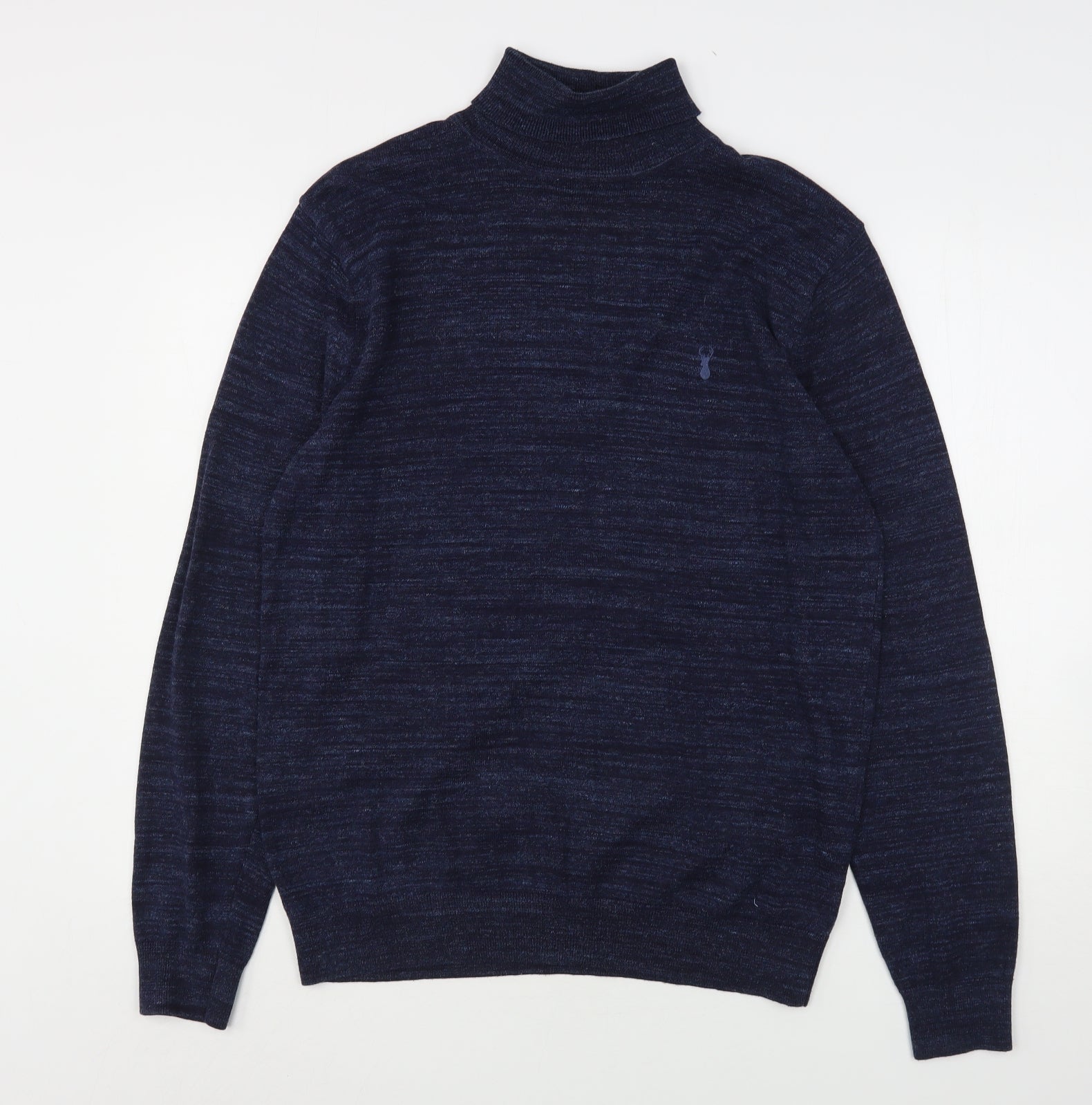 Mens Blue Roll Neck Cotton Pullover Jumper Size L
