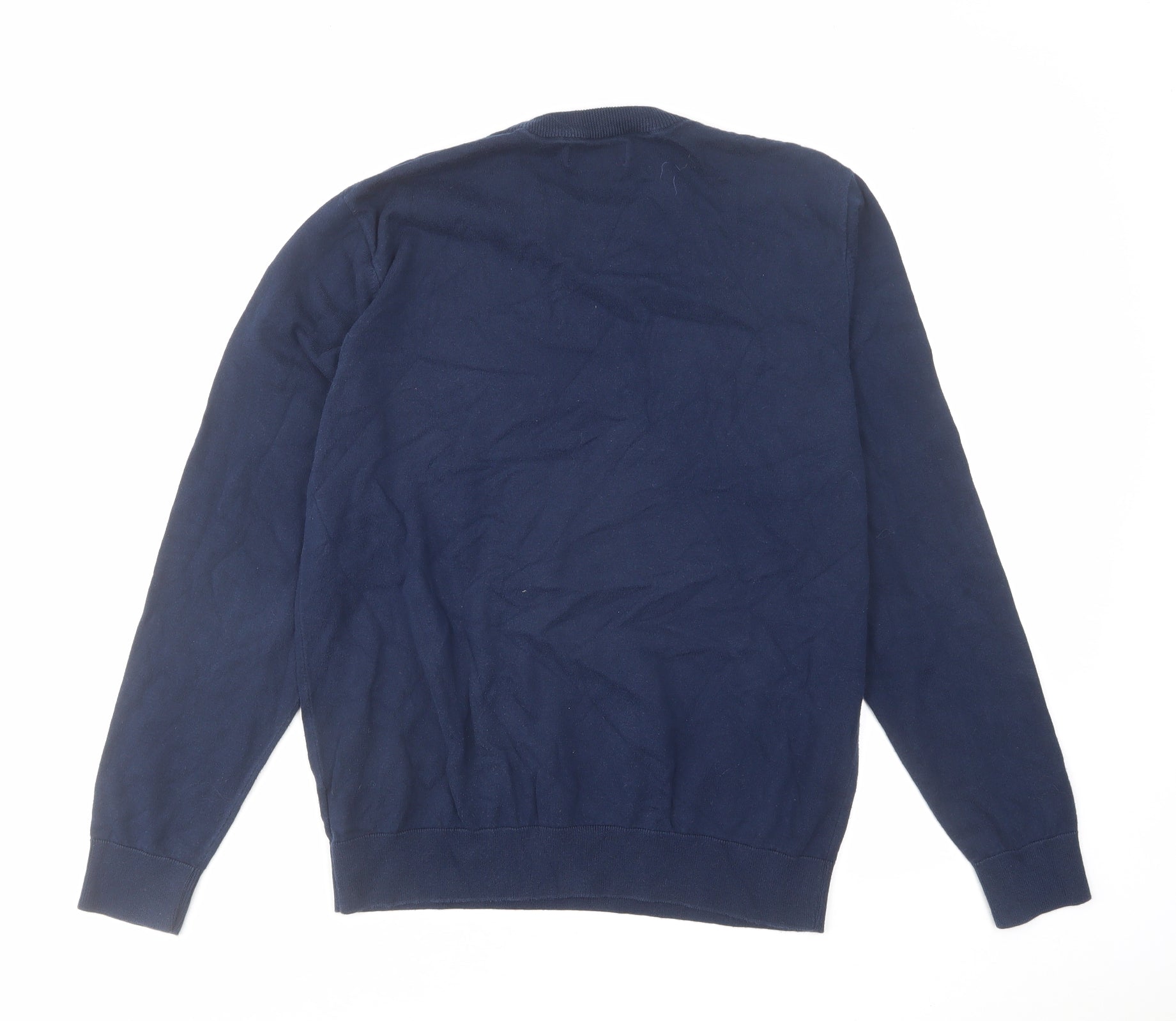 Mens Blue Round Neck Cotton Pullover Jumper Size M Long Sleeve