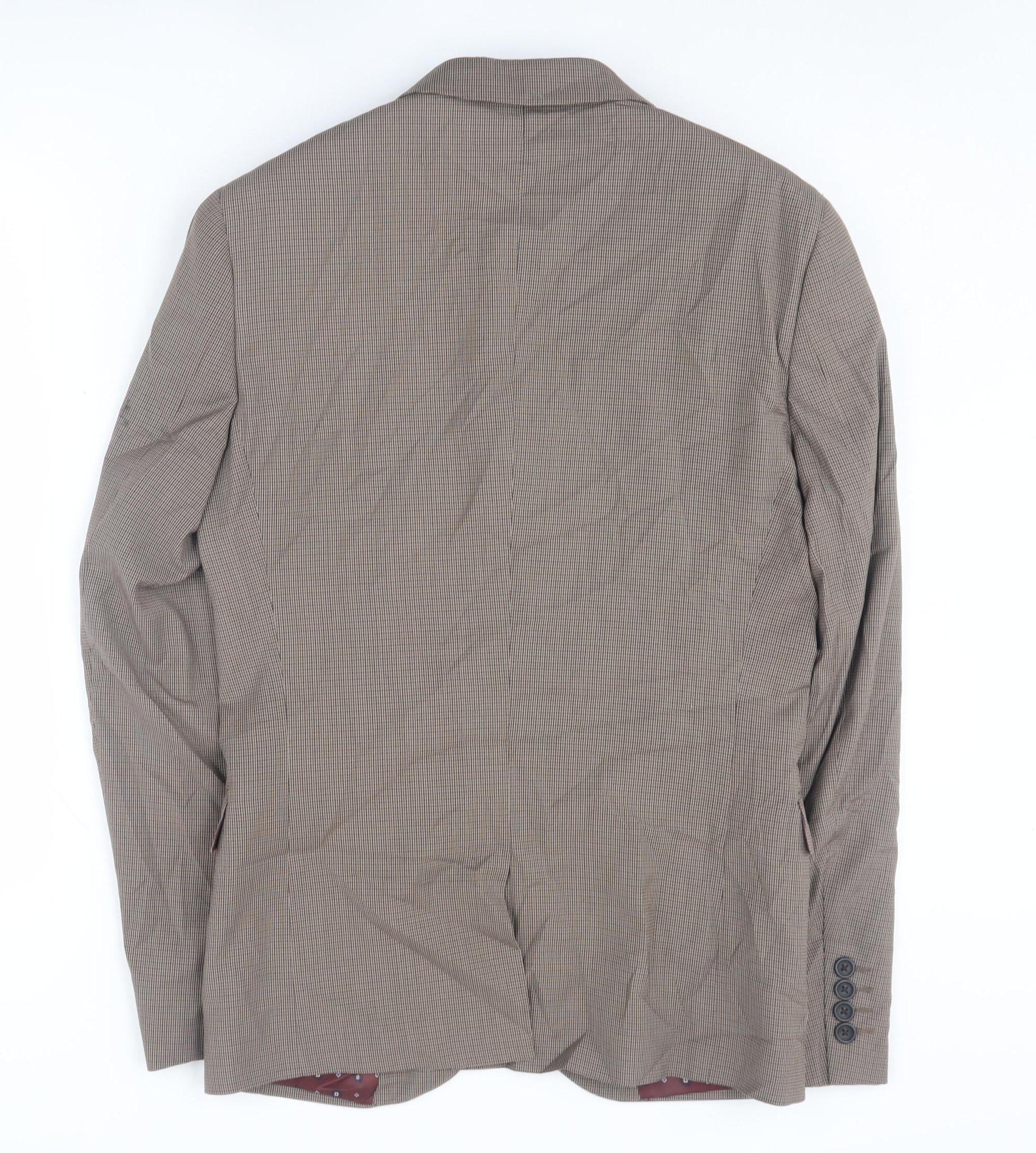 Elevate your formal wardrobe with this exquisite men's blazer from Next. Crafted in a classic check pattern, this brown blazer exudes sophistication and is perfect for business or formal occasions. Made from a quality blend of 75% polyester and 25% viscose, it offers both durability and comfort, ensuring ease of movement and a smooth fit. The blazer features a regular fit with a single-breasted two-button front, complemented by notch lapels to enhance its timeless look. The lining is 100% polyester, adding an extra layer of quality to the construction. Practicality meets style with four-button sleeves and a single-vented back, providing a professional finish. This garment is dry clean only, maintaining the pristine condition of the blazer over time. The Next men's blazer, size 36, is tailored for those who appreciate the finer details in their attire. Despite being pre-owned, it is in excellent condition, with only slight creasing observed, presenting you with a stylish addition to your wardrobe at an attractive price. Ideal for the modern gentleman seeking to make a mark at work or any formal gathering, this blazer is a must-have piece that promises to leave a lasting impression. Don’t miss the chance to own this versatile blazer, perfectly suited for all seasons.