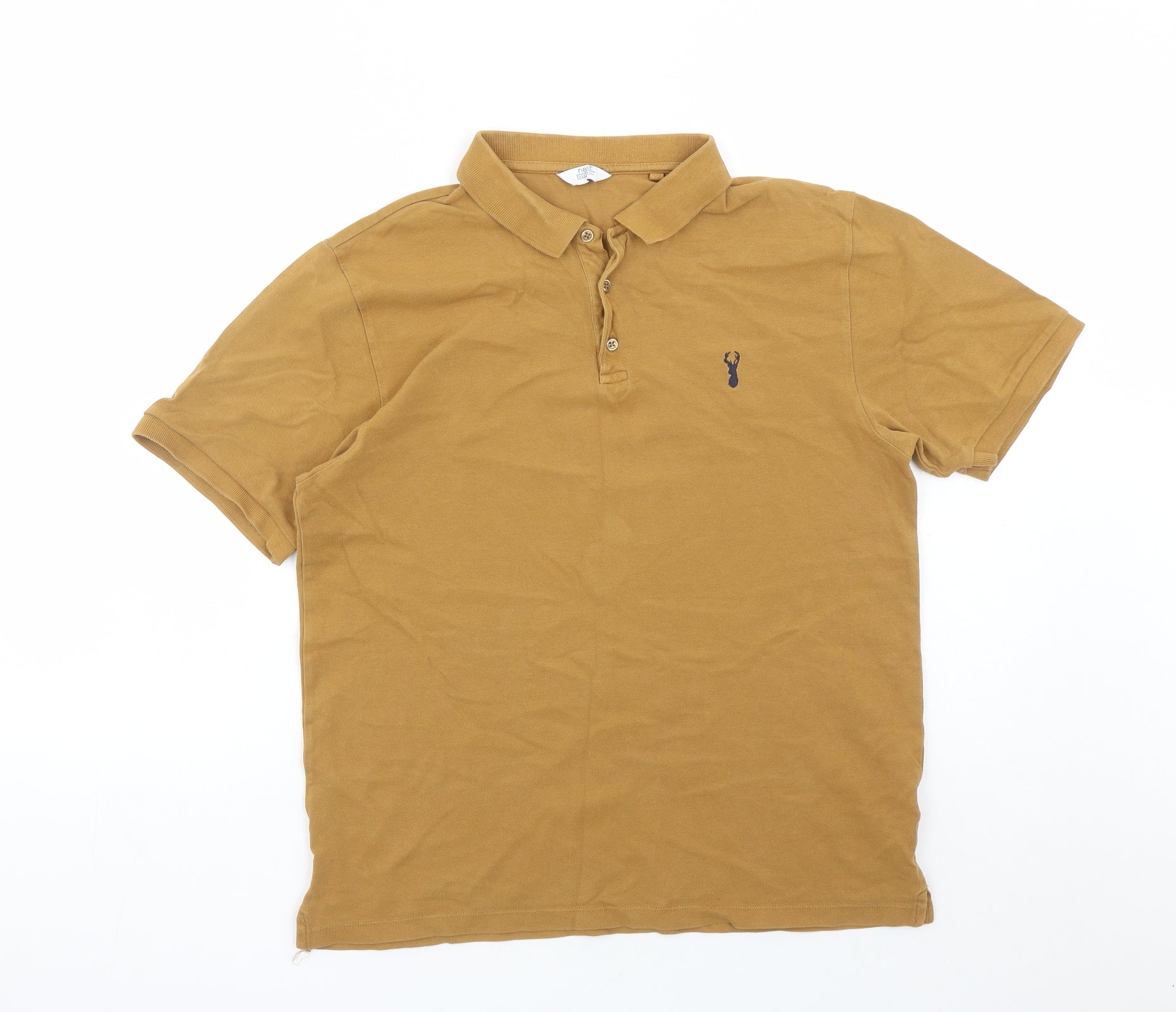 Next Men's Yellow Long Sleeve Cotton Polo Shirt M