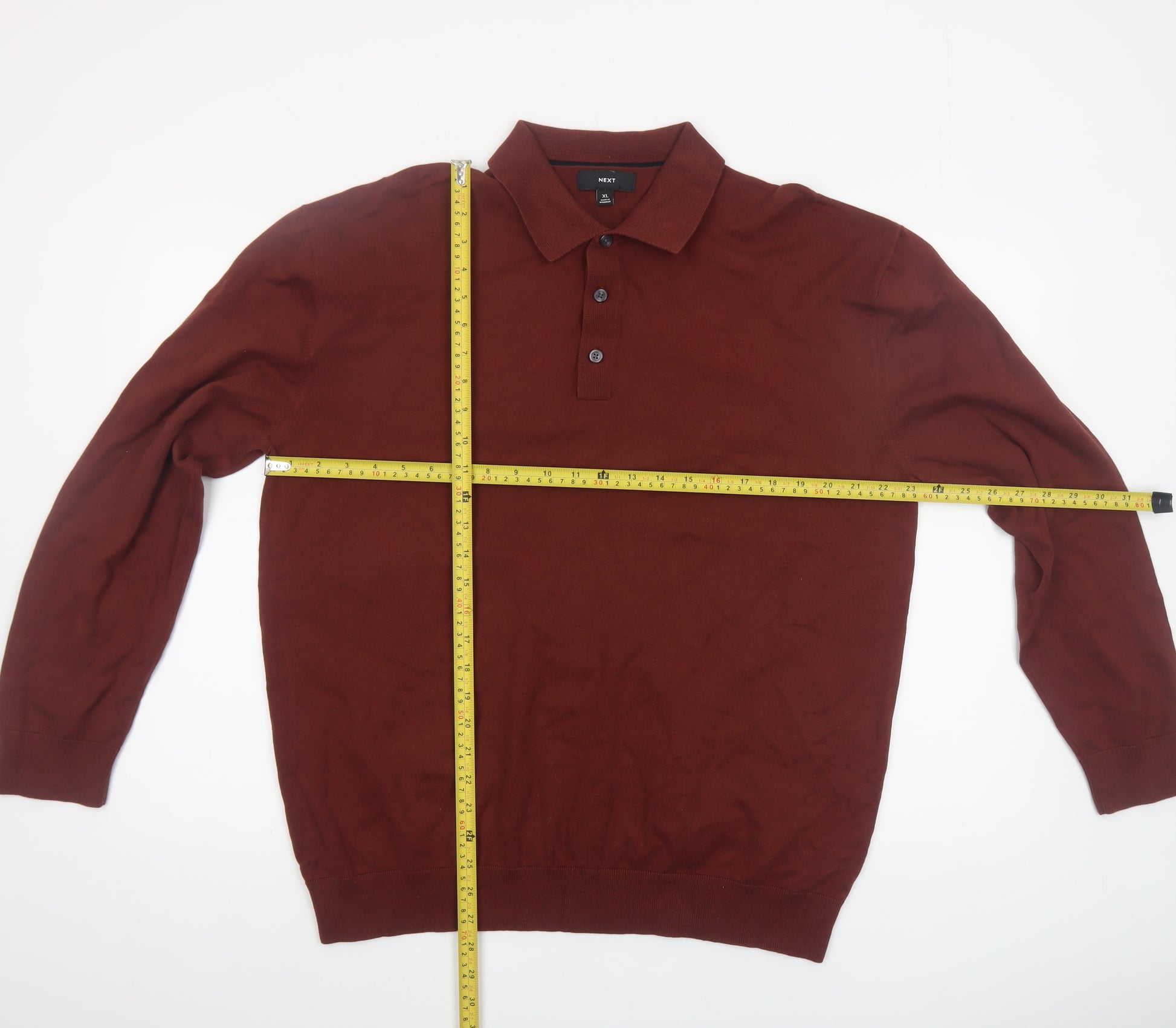 Add refined elegance to your wardrobe with this classic men's brown Henley jumper from Next. Designed in a rich, warm brown hue, it perfectly balances smart and casual styling, making it a versatile piece for every season. Crafted from a soft and breathable cotton blend with 18% nylon, the jumper provides all-day comfort and shape retention, ideal for layering under a jacket or wearing on its own. The collared neckline with a three-button placket gives it a polished Henley style, offering a touch of sophistication suitable for both business-casual and laid-back weekend outfits. The fine knit texture lends a neat, lightweight finish, providing wearability across spring, autumn and winter. With ribbed cuffs and hem for a secure fit, it maintains a clean silhouette that complements classic, slim or regular trousers effortlessly. The XL size corresponds to a 45–47 inch chest, ensuring a comfortable regular fit designed for easy movement and timeless comfort. This high-quality piece shows minimal signs of use and remains in excellent condition with no marks, holes or snags observed. Whether you’re heading out for a relaxed dinner, a day at the office, or a smart-casual event, this Next jumper adds understated sophistication to any outfit. Easy to care for with machine washable convenience, it’s a reliable staple designed for modern living. Elevate your knitwear collection with this expertly made Henley jumper — the perfect balance of comfort, quality, and contemporary styling that embodies Next’s attention to detail and craftsmanship.