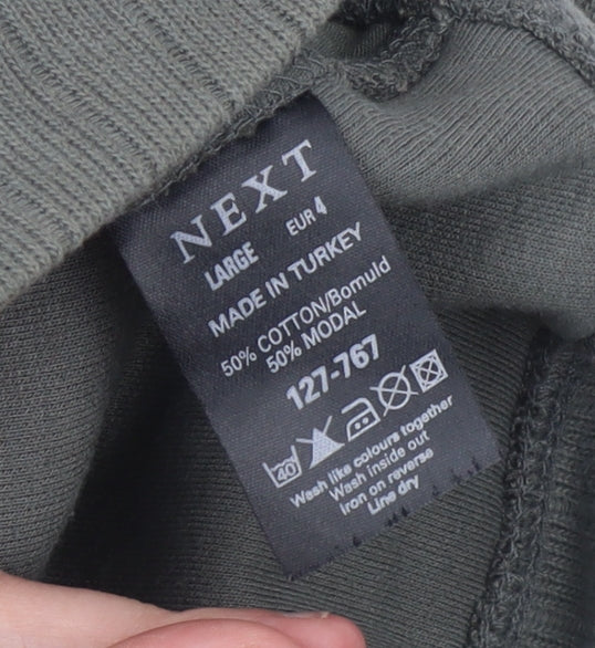 Update your casual wardrobe with this stylish men's full-zip sweatshirt from Next. Crafted in a versatile muted green shade, the design blends everyday comfort with understated style. Made from a high-quality jersey fabric, the sweatshirt features a soft and breathable mix of 50% cotton and 50% modal, ensuring it feels smooth against the skin while retaining its shape through regular wear. The full-zip front and high neckline allow for easy layering and adjustable warmth, making it ideal for transitional weather in autumn, spring, or cool winter days. Designed with practical front pockets to keep your hands warm or store small essentials, the sweatshirt’s ribbed cuffs and hem add a subtle sporty touch and help maintain structure through wear. The plain fabric makes it effortlessly versatile — perfect for pairing with jeans, chinos, or joggers for a laid-back but polished look. Suitable for men who prefer comfort without sacrificing quality, this Regular Fit sweatshirt achieves a relaxed yet tailored silhouette that flatters various body shapes. Its lightweight construction and breathable material composition make it great for layering over T-shirts or under jackets. Whether you’re heading out for a walk, running errands, or lounging at home, this piece combines durability and timeless appeal typical of Next menswear. Conditioned as Very Good, showing minimal signs of wear such as a faint mark, this is a pre-loved wardrobe essential that offers both function and fashion at a great price. A dependable choice for men seeking a comfortable, classic, and practical addition to their rotation, balancing clean design with premium material quality.