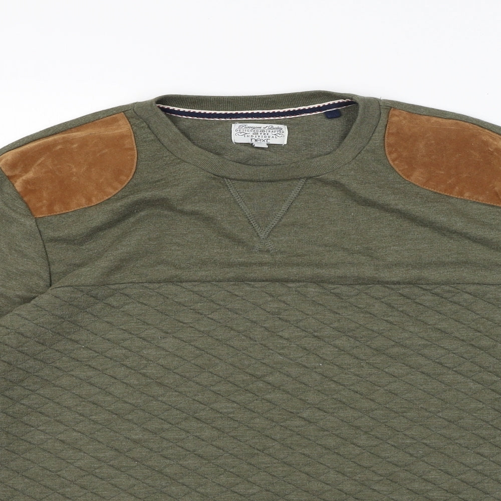 Mens Green Pullover Jumper Size M - elbow and shoulder patches
