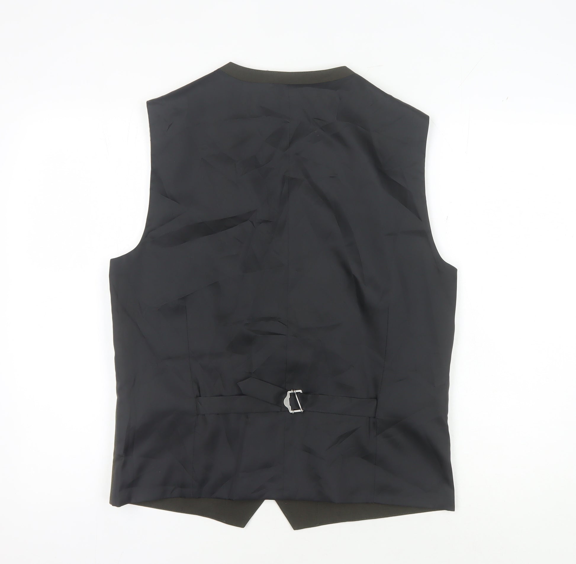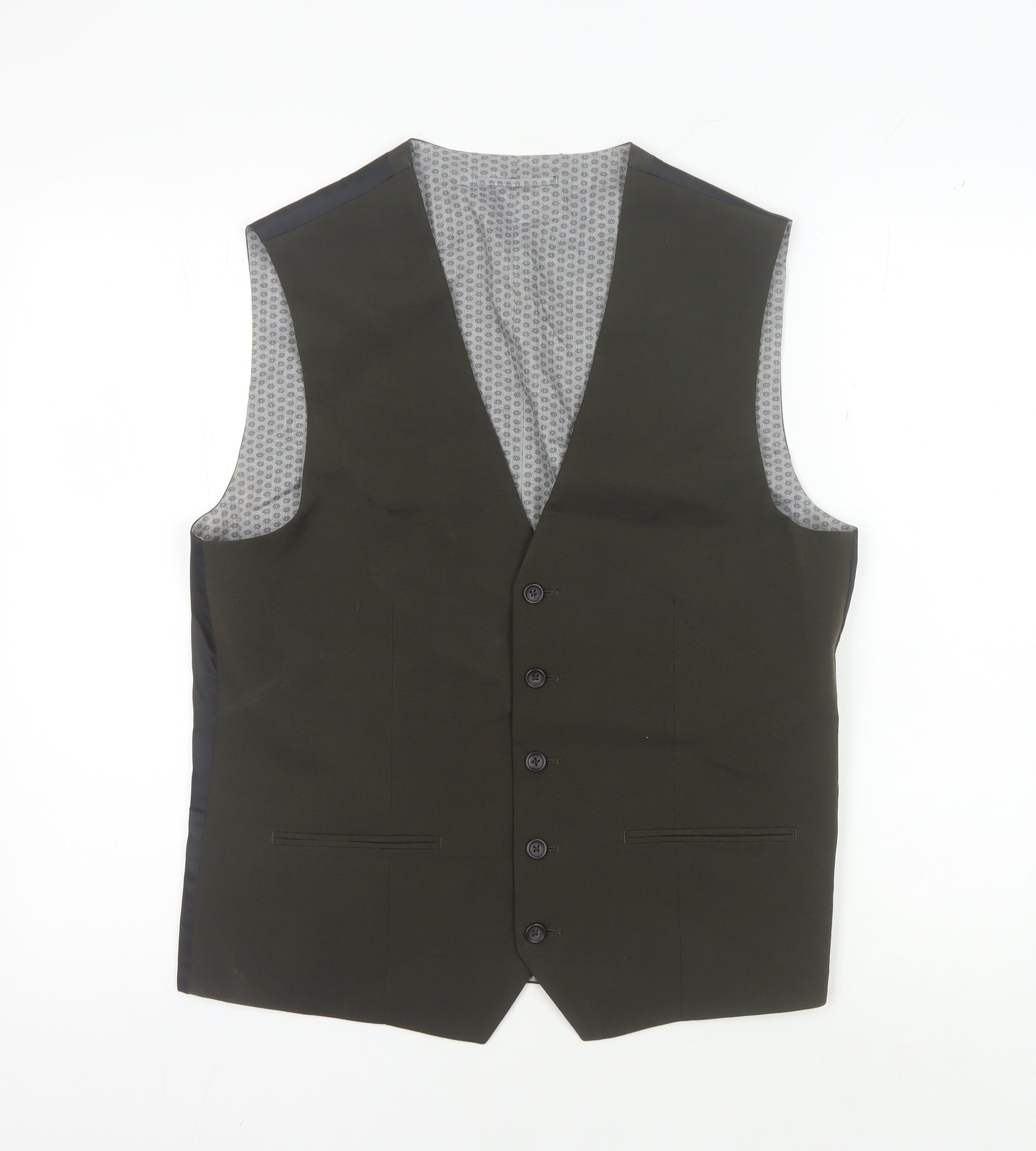 Elevate your formal attire with this sophisticated Next Men's Green Suit Waistcoat, designed in a timeless and versatile style. Crafted with a blend of high-quality materials including 68% polyester, 22% viscose, and 2% elastane, this waistcoat offers both elegance and comfort. The fine finish is complemented by a stylish, regular fit that enhances your silhouette in any formal setting.This sleek and contemporary waistcoat comes in a refined green shade, providing a neutral yet standout option for any wardrobe. The subtle, patternless design adds an element of sophistication, ensuring it pairs effortlessly with an array of suit jackets and tailored trousers. It’s perfect for weddings, business meetings, or any formal occasion where you want to make a lasting impression.The waistcoat features a durable lining composed of polyester and cotton, adding a layer of comfort and breathability. Constructed with careful attention to detail, it is designed to be dry-cleaned only, maintaining its pristine appearance wash after wash.Offered in a size large, it accommodates a chest size of 40 inches, providing the ideal fit for many. Its modern design makes it suitable for men in various departments, ensuring a classy and unified look across your formalwear.Due to slight creasing visible, the condition is marked as 'Excellent', assuring you of its minimal wear and preserved quality. Priced attractively, this waistcoat is a premium addition to your collection at a competitive value.Enhance your formal wardrobe with the understated elegance of this Next Men's Waistcoat and leave a remarkable impression at your next event.