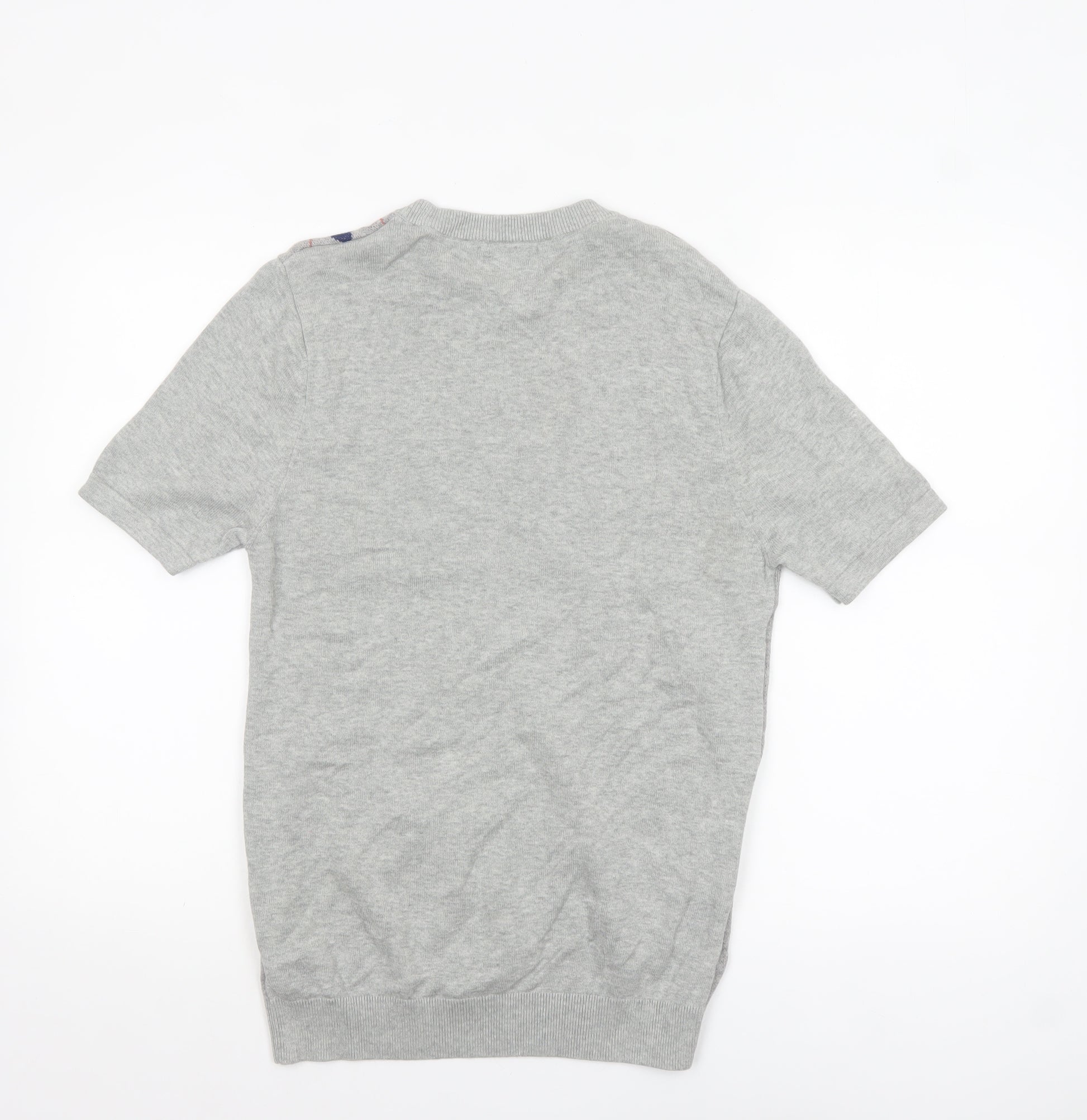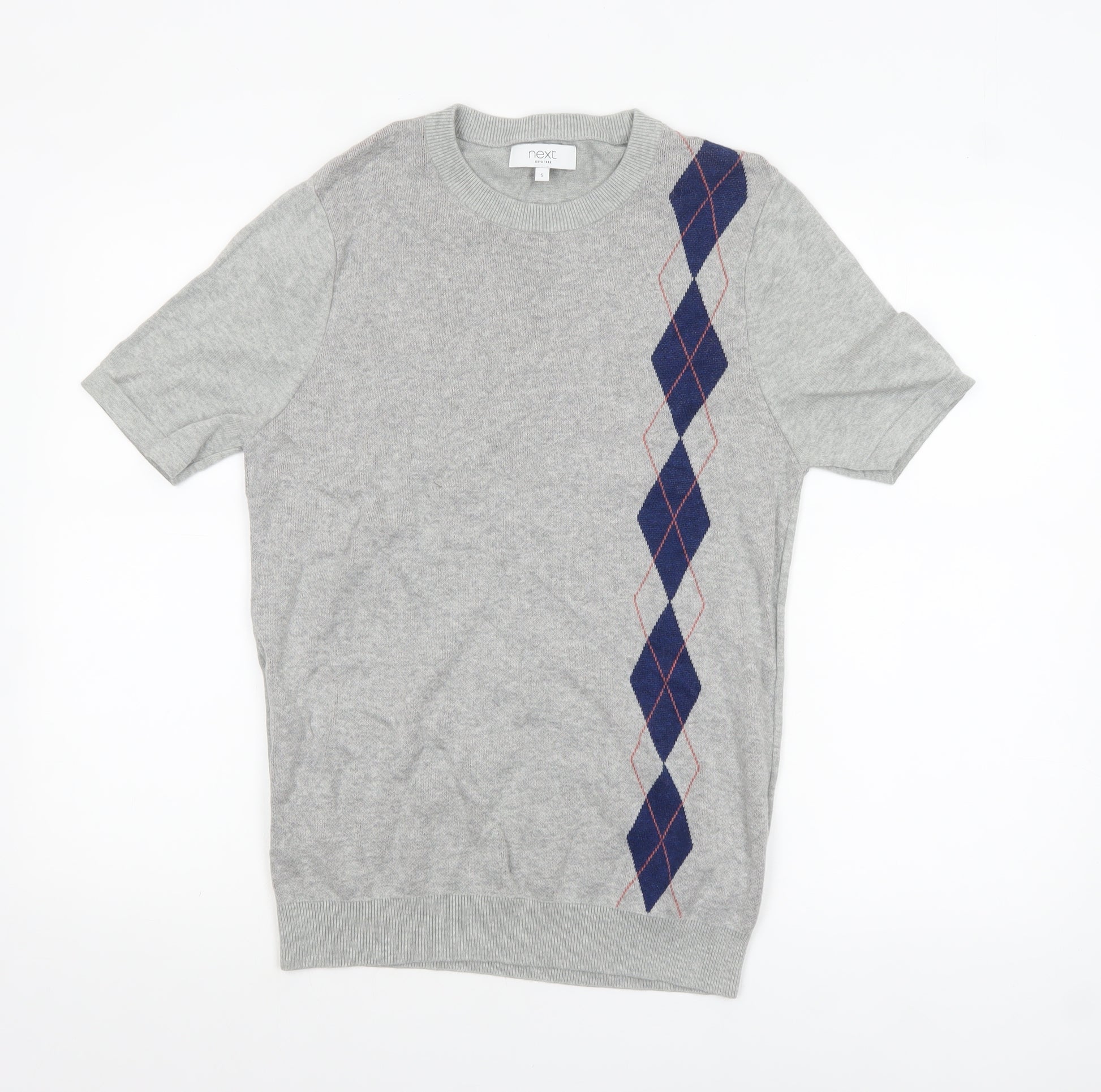 Next Men's Grey Argyle Short Sleeve Cotton Jumper Size S