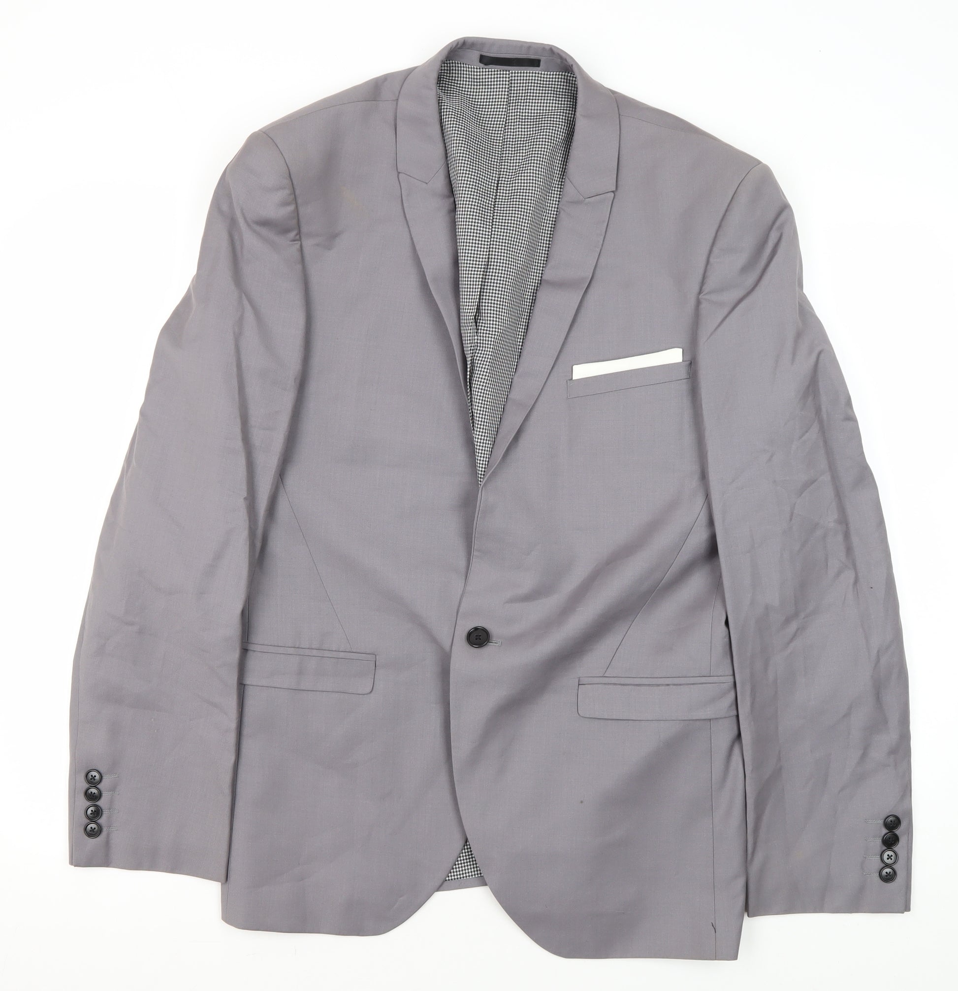 Next Men's Grey Regular Fit Blazer 40R Two Button Notch Lapel Jacket