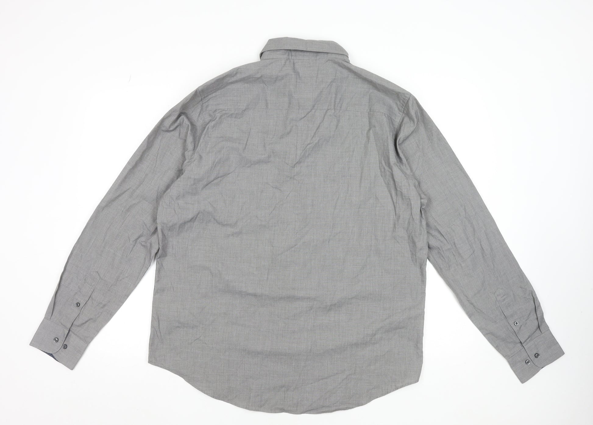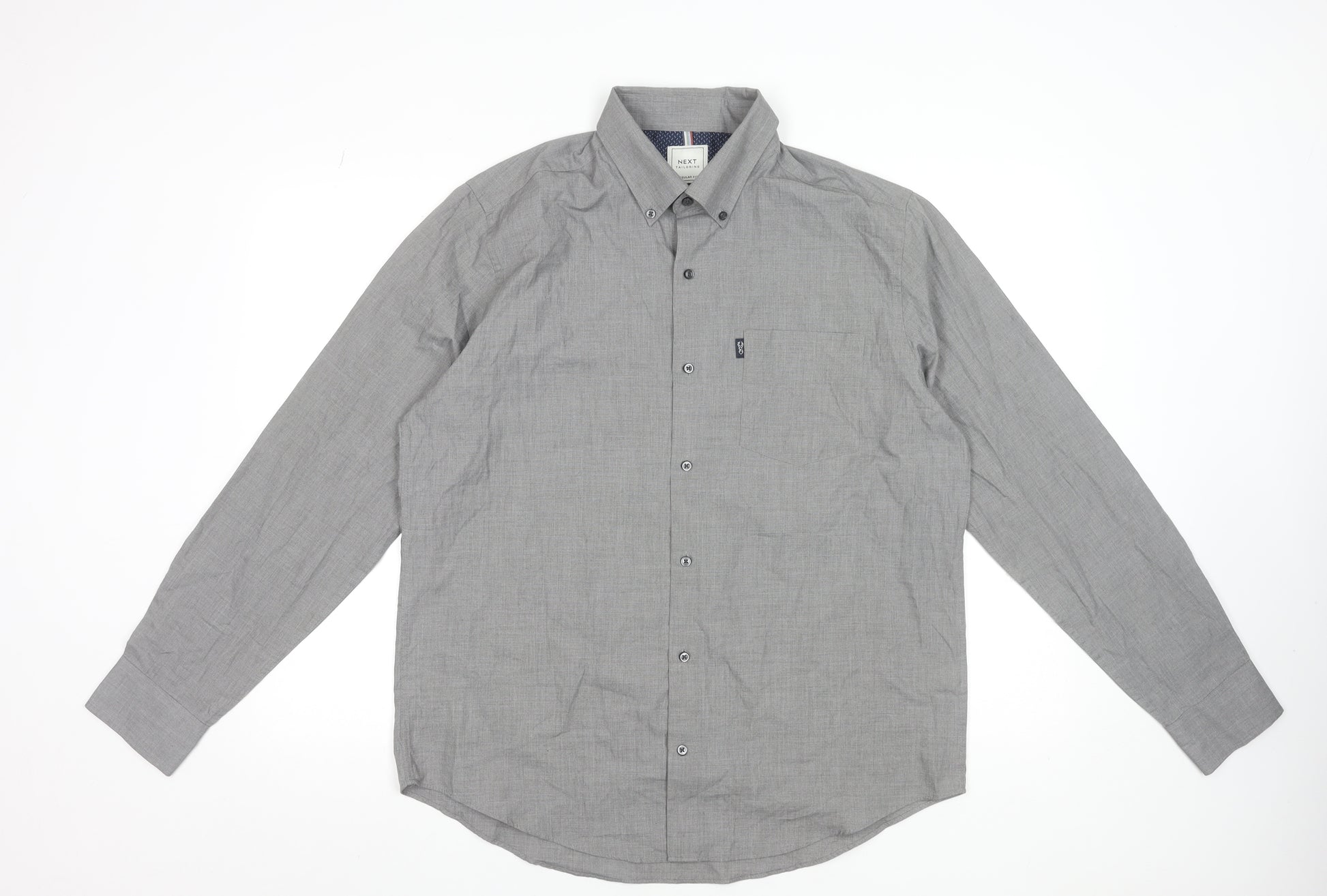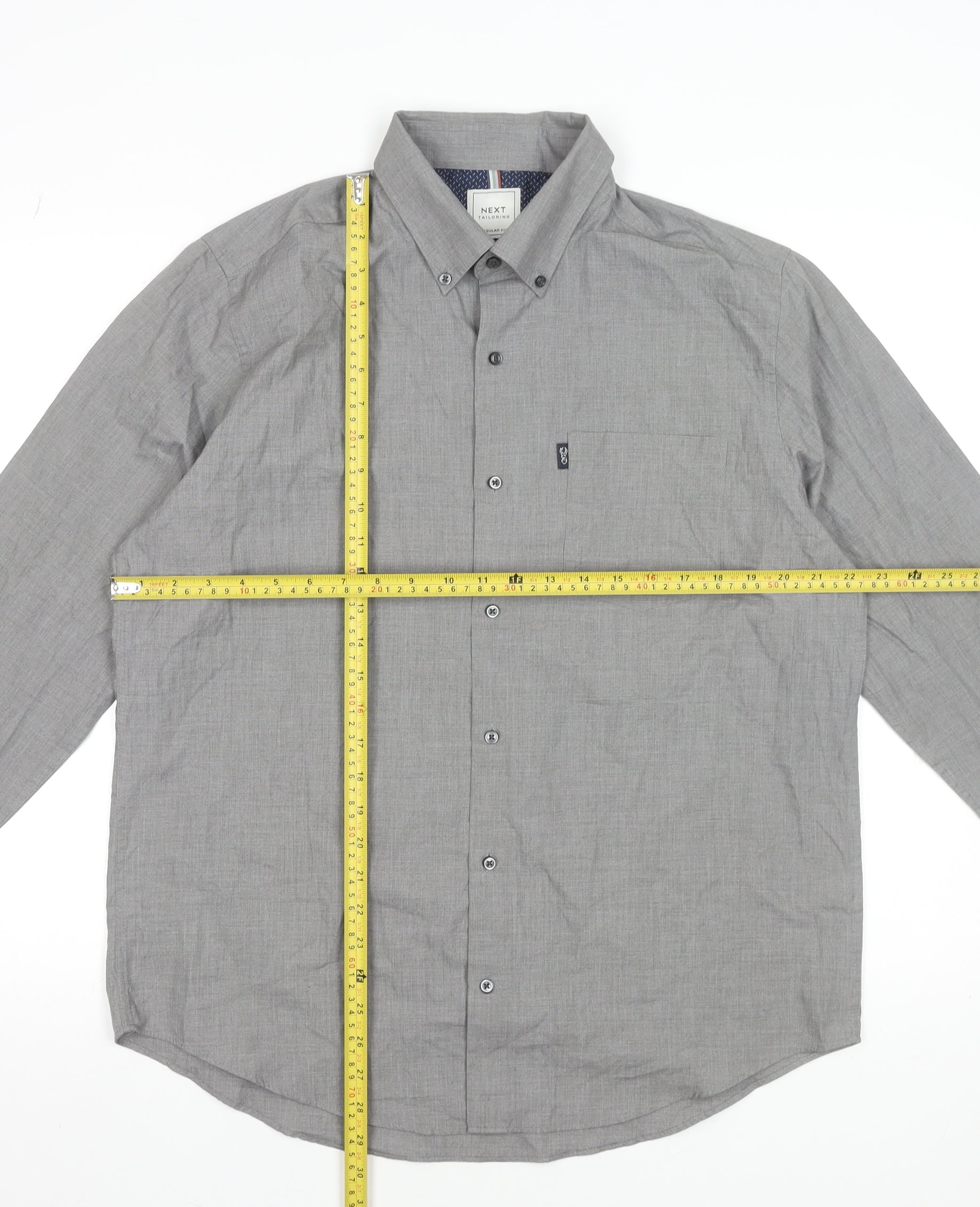 Next Men's Grey Button-Down Long Sleeve Formal Dress Shirt L