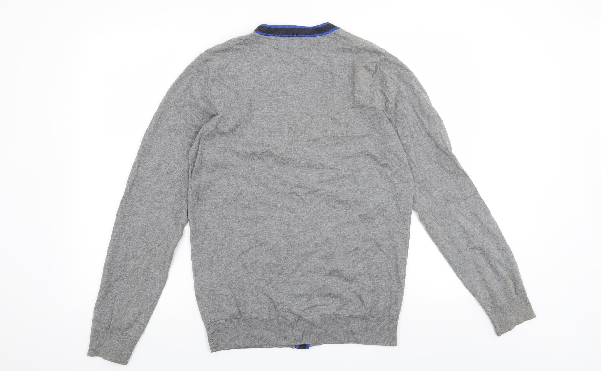 Next Men's Grey Cotton V-Neck Button Cardigan Small