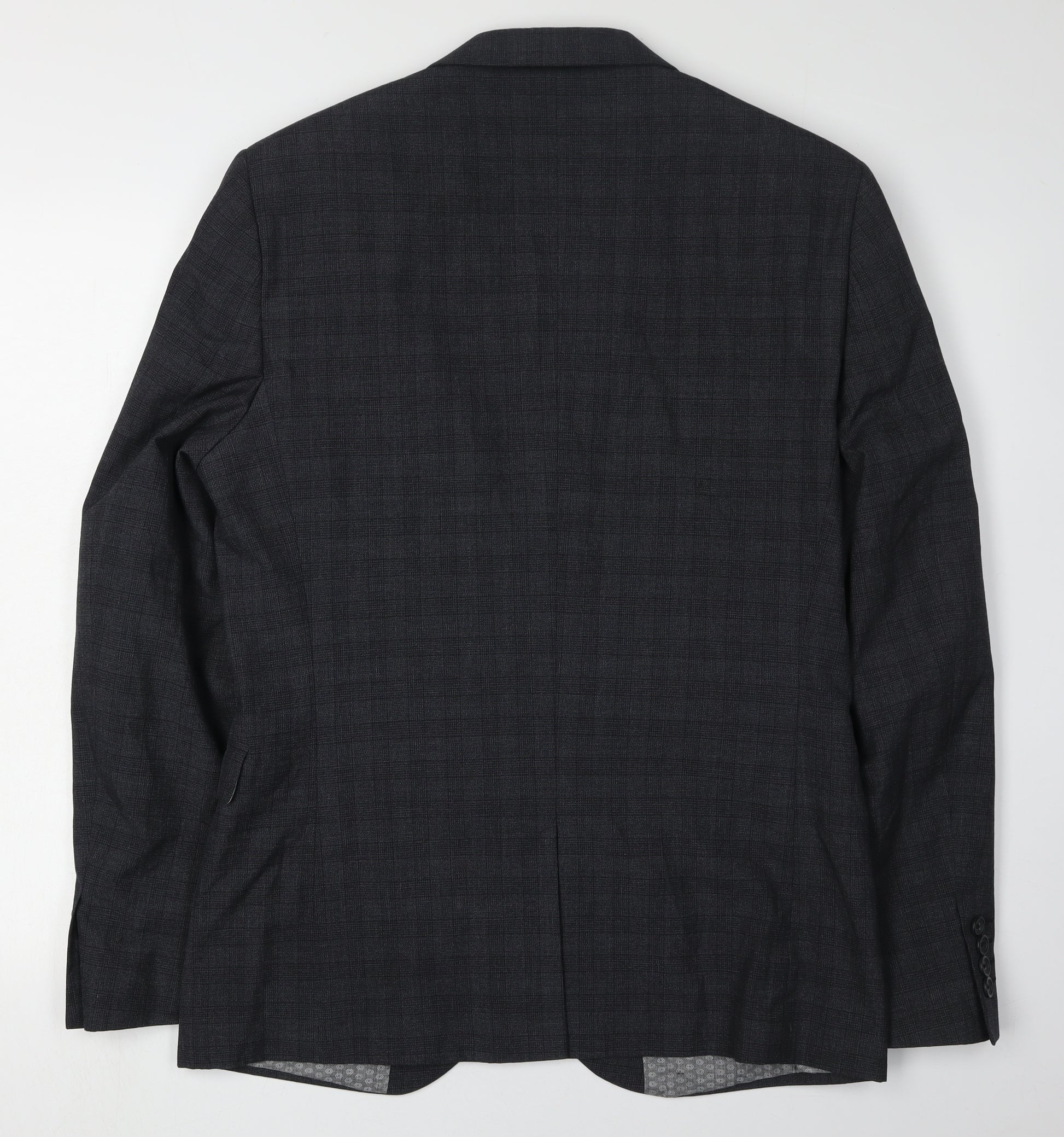 Discover effortless sophistication with this men's grey check blazer from Next. Tailored in a timeless single-breasted style, it features a notch lapel and classic two-button fastening, perfect for business or formal occasions. Made from a premium blend of polyester and viscose, this jacket combines style with comfort. Its regular length provides a flattering fit for everyday wear, while the subtle check pattern adds an elegant touch to your ensemble. The double-vented back ensures ease of movement, making it a versatile addition to your wardrobe. Complete with four-button sleeves and handy inner pockets, this blazer offers both function and style. Ideal for autumn and winter, pair it with your favourite trousers for a polished look. Professionally dry clean to maintain its excellent condition.