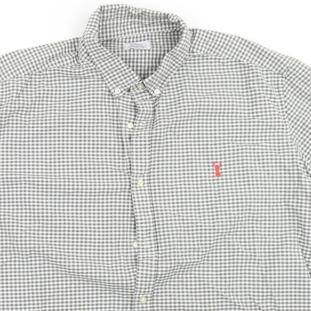 Mens Grey Check Cotton Button-Up Size 2XL Collared Button