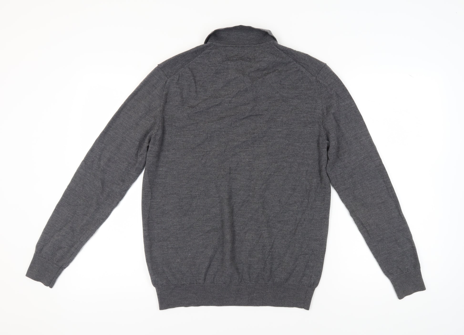 Elevate your wardrobe with this classic Next Men's Grey Collared Pullover Jumper, perfect for versatile styling. Crafted from 100% merino wool, this jumper offers unparalleled comfort and warmth, making it an ideal choice for the cooler seasons of autumn, winter, and spring. Its regular fit ensures a comfortable yet tailored look suitable for both casual outings and workwear.The sleek grey colour and collared neckline provide a sophisticated edge, while the tight-knit design adds subtle texture to your ensemble. This jumper pairs effortlessly with jeans or chinos, making it a staple piece for any man's collection. Easy to care for with machine washable convenience, it's designed to be both practical and stylish.Condition is assessed as 'Excellent', with minimal signs of wear, ensuring you look sharp and polished. Whether you're heading to the office or out for a casual weekend, this versatile pullover jumper delivers timeless style with modern comfort.