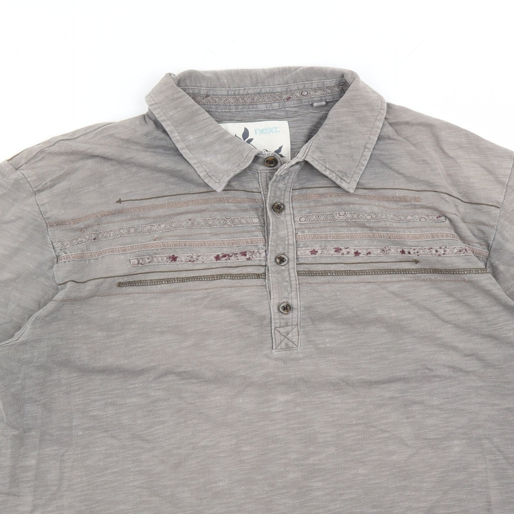 Next Men Pink Cotton Blend Polo Shirt L Short Sleeve Classic Fit