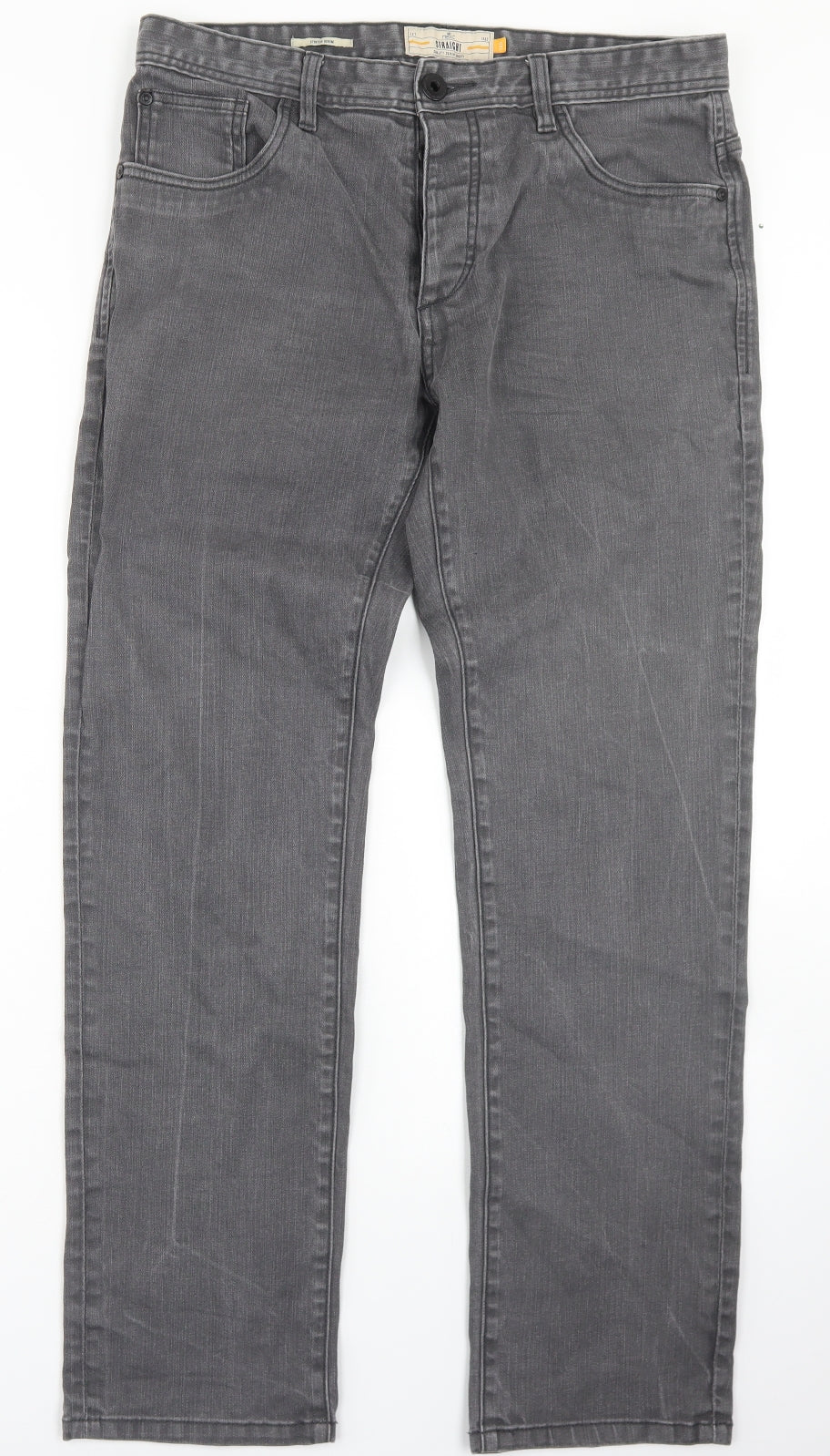 Mens Grey Cotton Straight Jeans Size 34 in L30 in Regular Button