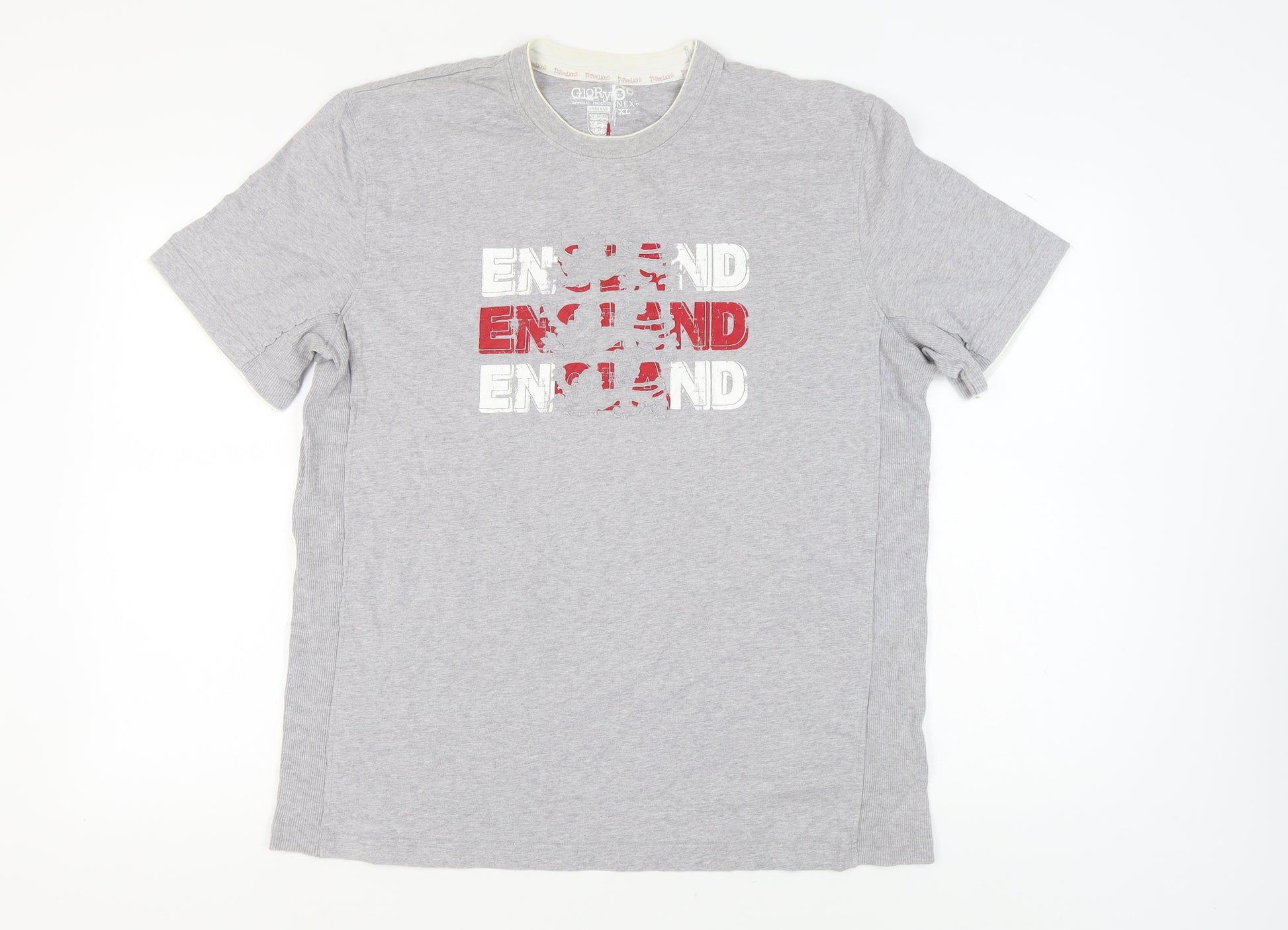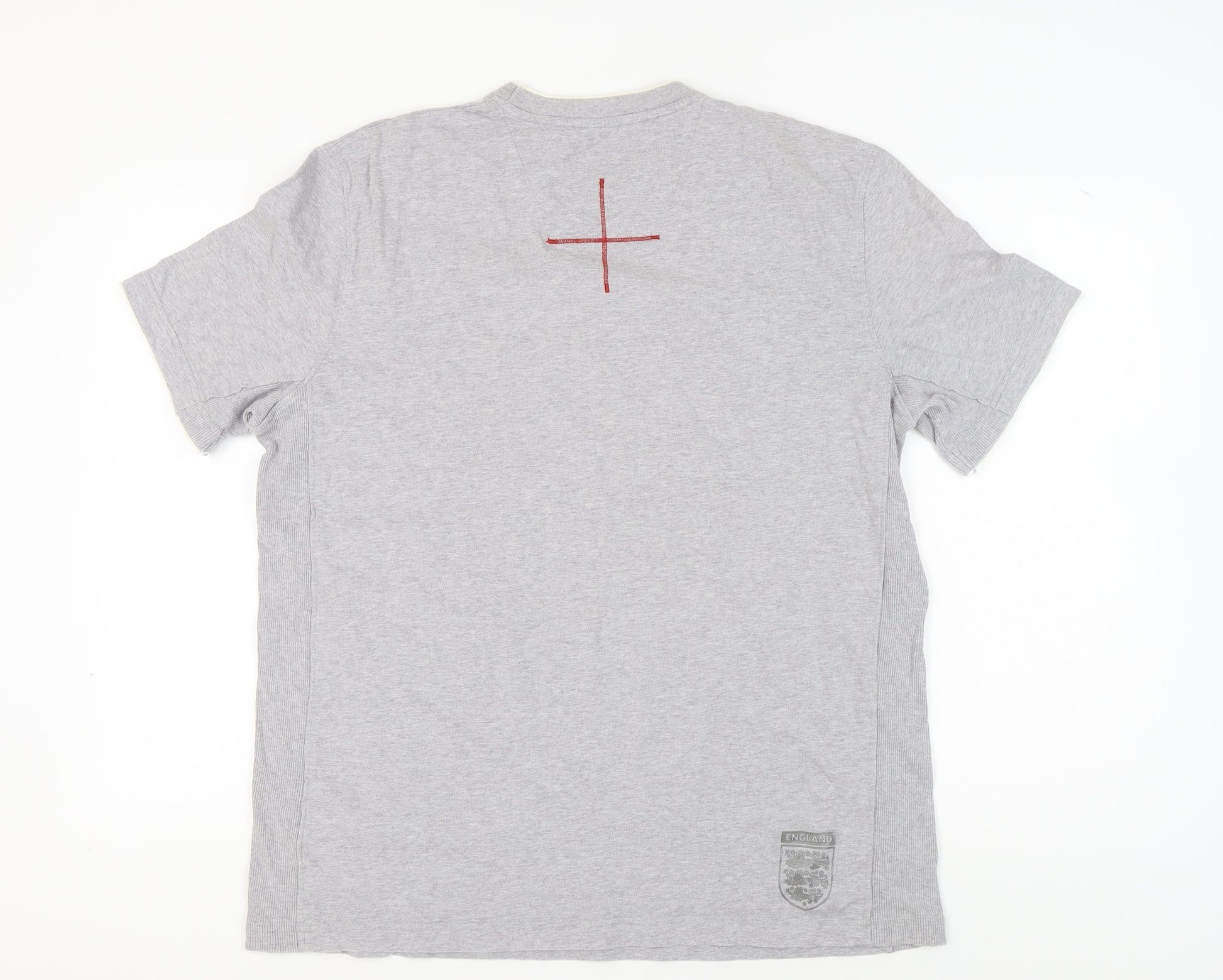 This grey short sleeve T-shirt from Next is a must-have for any sports or England fan. Crafted from 100% cotton, it offers comfort and breathability suitable for all seasons. The Crew Neck design provides a classic look, perfect for casual or sporty outings. Featuring a patriotic and sporty theme with a bold 'England' graphic print, this T-shirt exudes pride and style. It's an official licensed product, adding authenticity to your wardrobe collection. The XL size and regular fit make it an ideal choice for a relaxed and comfortable wear. Despite showing slight wear on the print, the overall condition remains excellent. Whether you're heading to a game or just out for a casual day, this shirt pairs well with jeans or shorts, offering a versatile and trendy option. Embrace your love for England with this stylish tee.