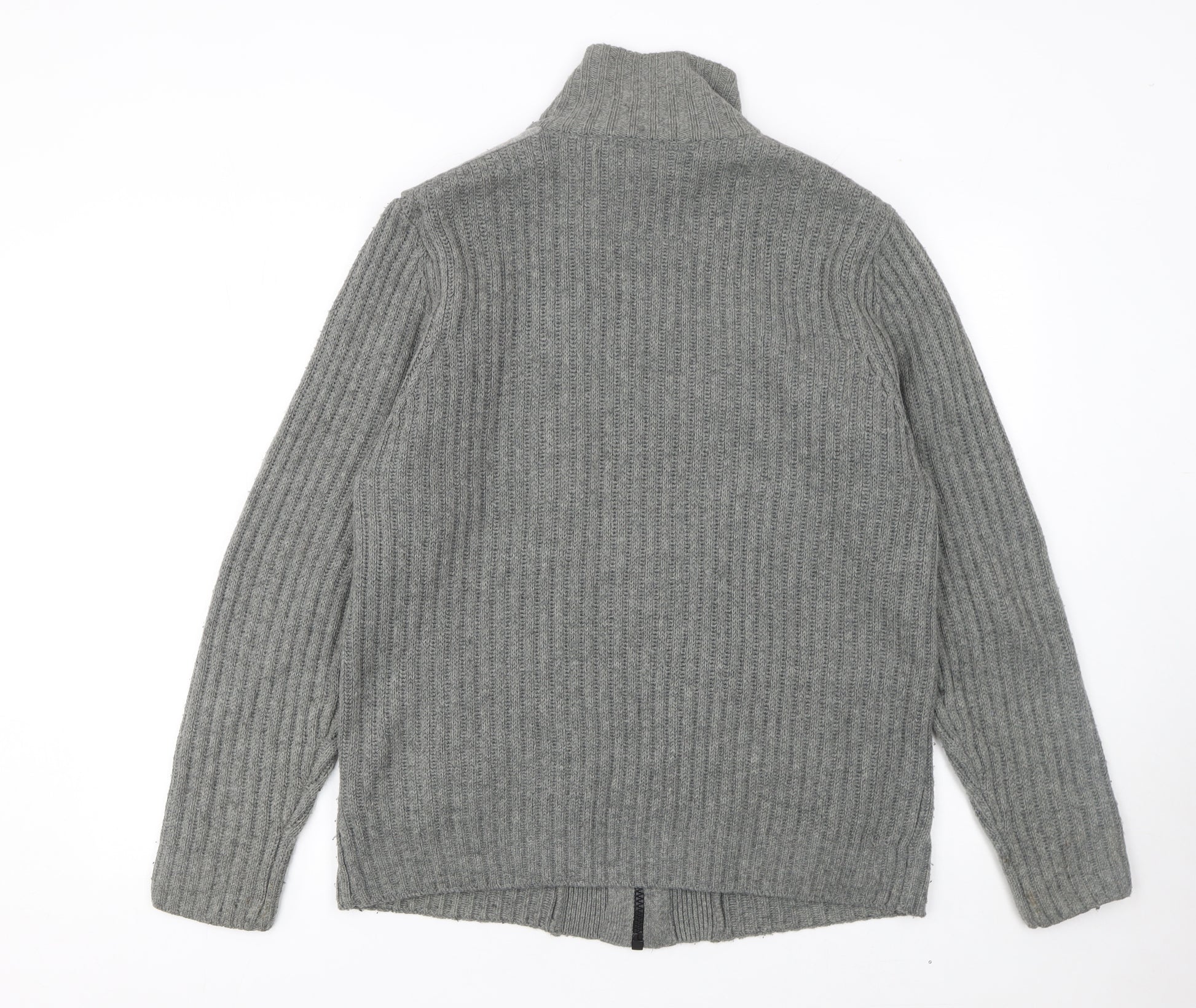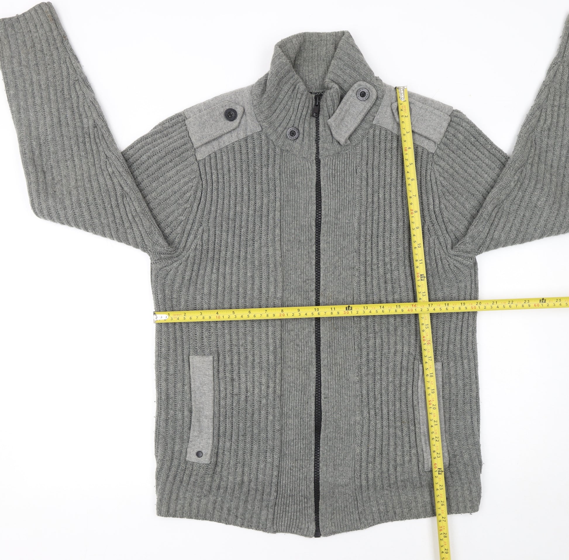 Next Men's Grey Full Zip Chunky Knit High Neck Jumper Size M
