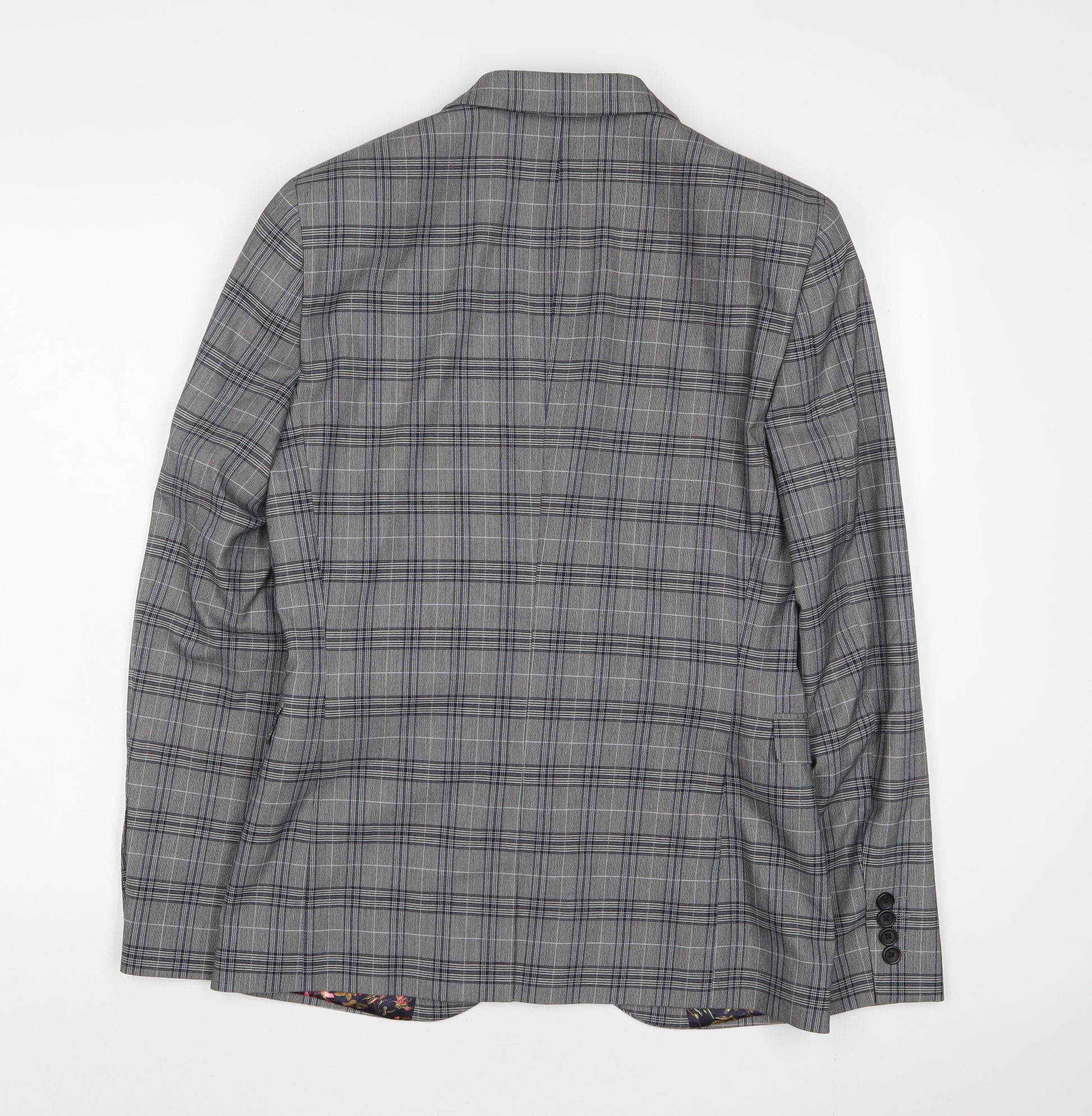 Mens Grey Plaid Polyester Jacket Suit Jacket Size 38 Regular