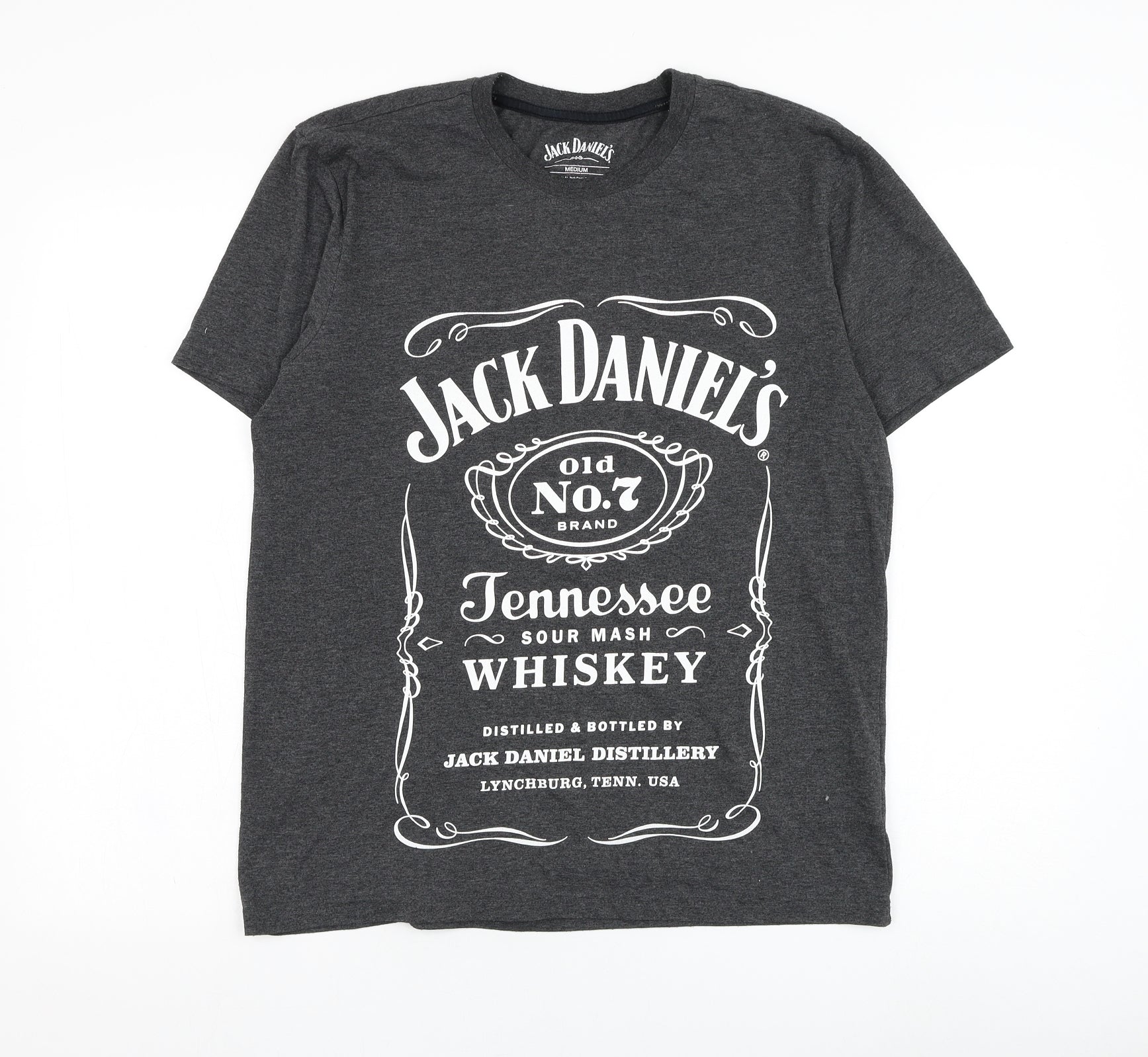 Mens Grey Polyester T-Shirt Size M Round Neck - Jack Daniels