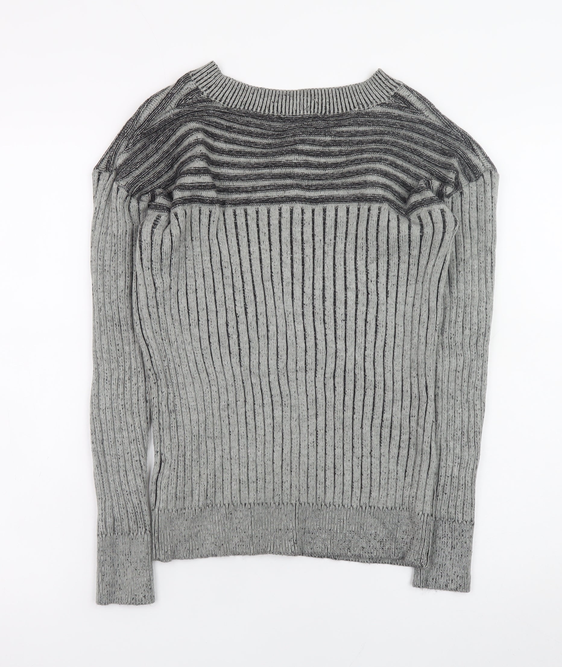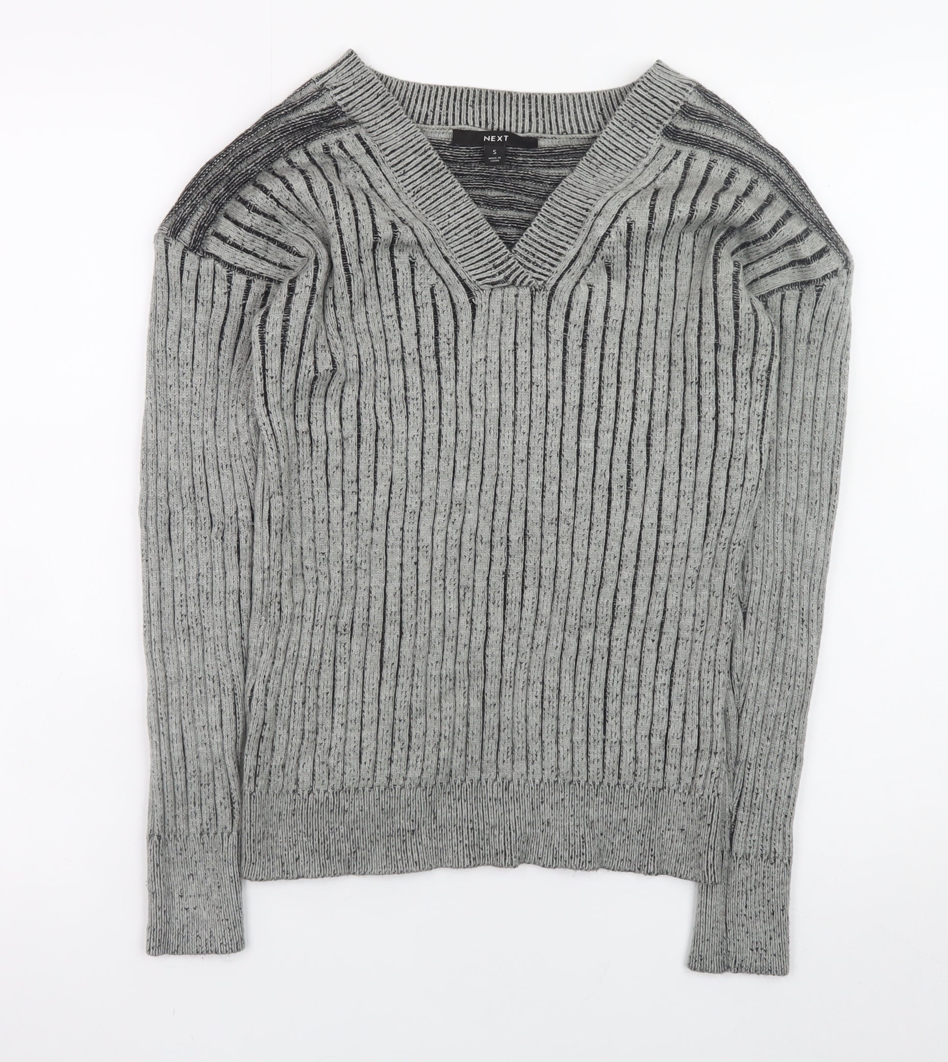 Next Mens Grey Ribbed Knit V-Neck Jumper Size S