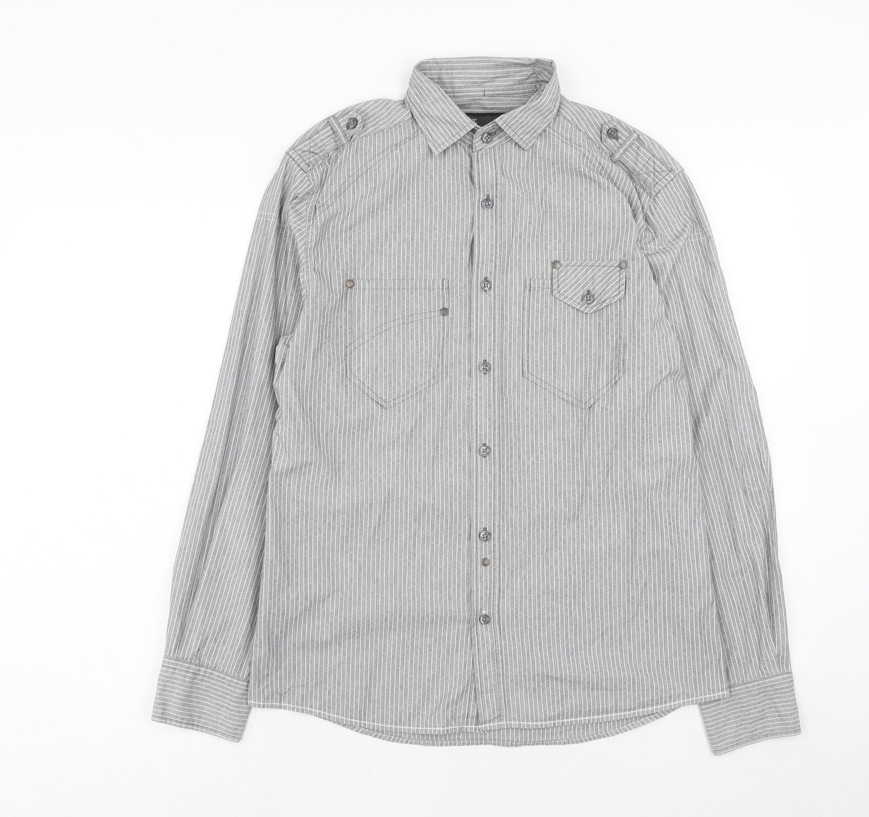 Regular price£10.50£1050Regular priceUnit price / perSale price £10.50 GBPBurton Mens Grey Striped Cotton Button-Up Size S Collared Button - Collar 14½''-15''