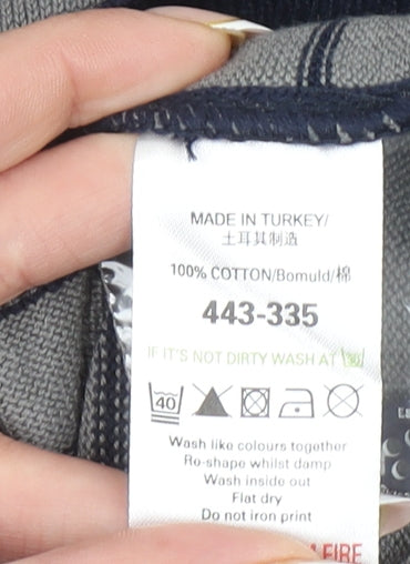This stylish men's Henley jumper from Next offers effortless casual sophistication combined with everyday comfort. Crafted entirely from 100% cotton, it provides a breathable, lightweight feel that is ideal for layering during cooler months or wearing on its own in transitional weather. The timeless grey base is complemented by finely woven navy stripes, finished with solid navy ribbed cuffs and hem for added structure and contrast. Shoulder button detailing and a three-button Henley neckline enhance its relaxed yet contemporary edge, while a subtle logo accent on the chest adds a refined brand touch without being overbearing.Designed for the modern man, this regular fit jumper ensures easy movement and all-day comfort. The soft knit construction makes it ideal for year-round wear, particularly suited for autumn, spring, and mild winter days. Whether paired with jeans for weekend outings or chinos for smart-casual occasions, this piece transitions seamlessly across different settings.Manufactured in Turkey, this quality garment represents the dependable craftsmanship typical of Next. Its machine washable design ensures easy care, allowing you to maintain its fresh look with minimal effort. The classic stripe pattern lends a timeless charm, making it a versatile addition to every wardrobe. Ideal for casual wear, it also complements business-casual or travel outfits effortlessly.With its excellent condition showing only light signs of careful use and no visible defects, this jumper promises both value and style for any occasion. Refresh your seasonal wardrobe with this versatile striped jumper — the perfect blend of comfort, quality, and effortless British style that never goes out of fashion.