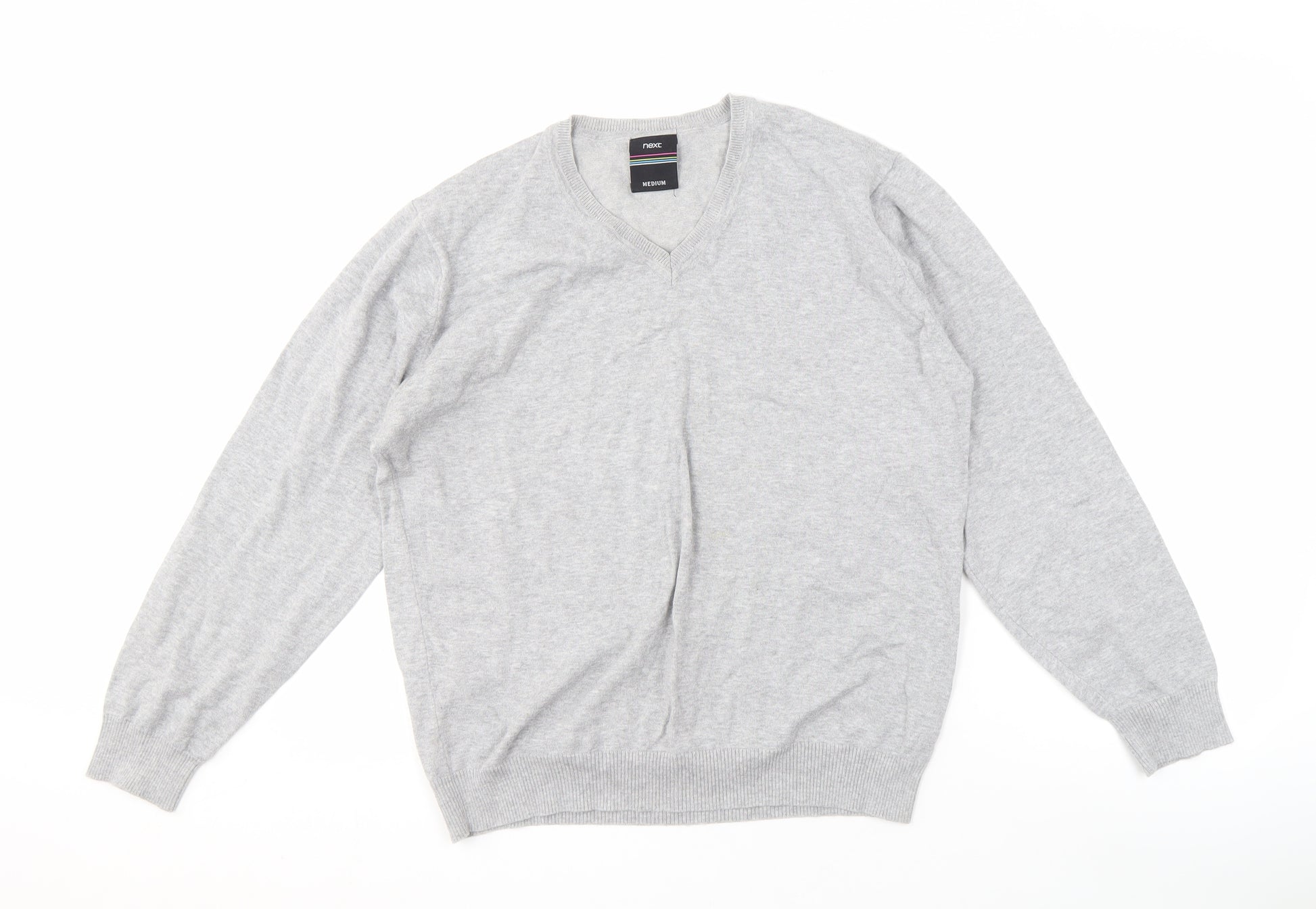 Enhance your casual wardrobe with this stylish grey pullover jumper from Next, tailored for men who appreciate quality and comfort. Crafted from 100% cotton, this piece ensures a soft and breathable fit, making it perfect for both autumn and winter seasons. Its regular size M provides a comfortable fit for an effortlessly relaxed vibe. The classic V-neckline adds a refined touch, making it versatile enough for layering over shirts or wearing solo. Finished in a neutral grey, it pairs seamlessly with any outfit, whether you're off to the office or enjoying a laid-back weekend. With long sleeves and a refined knit construction, this jumper maintains warmth while offering a sleek silhouette. In excellent condition with barely noticeable signs of wear, this jumper promises to be a staple in your wardrobe, offering both style and functionality for casual occasions. Available at an attractive price of £15.00, it's a smart choice for enhancing your seasonal collection with a touch of elegance.