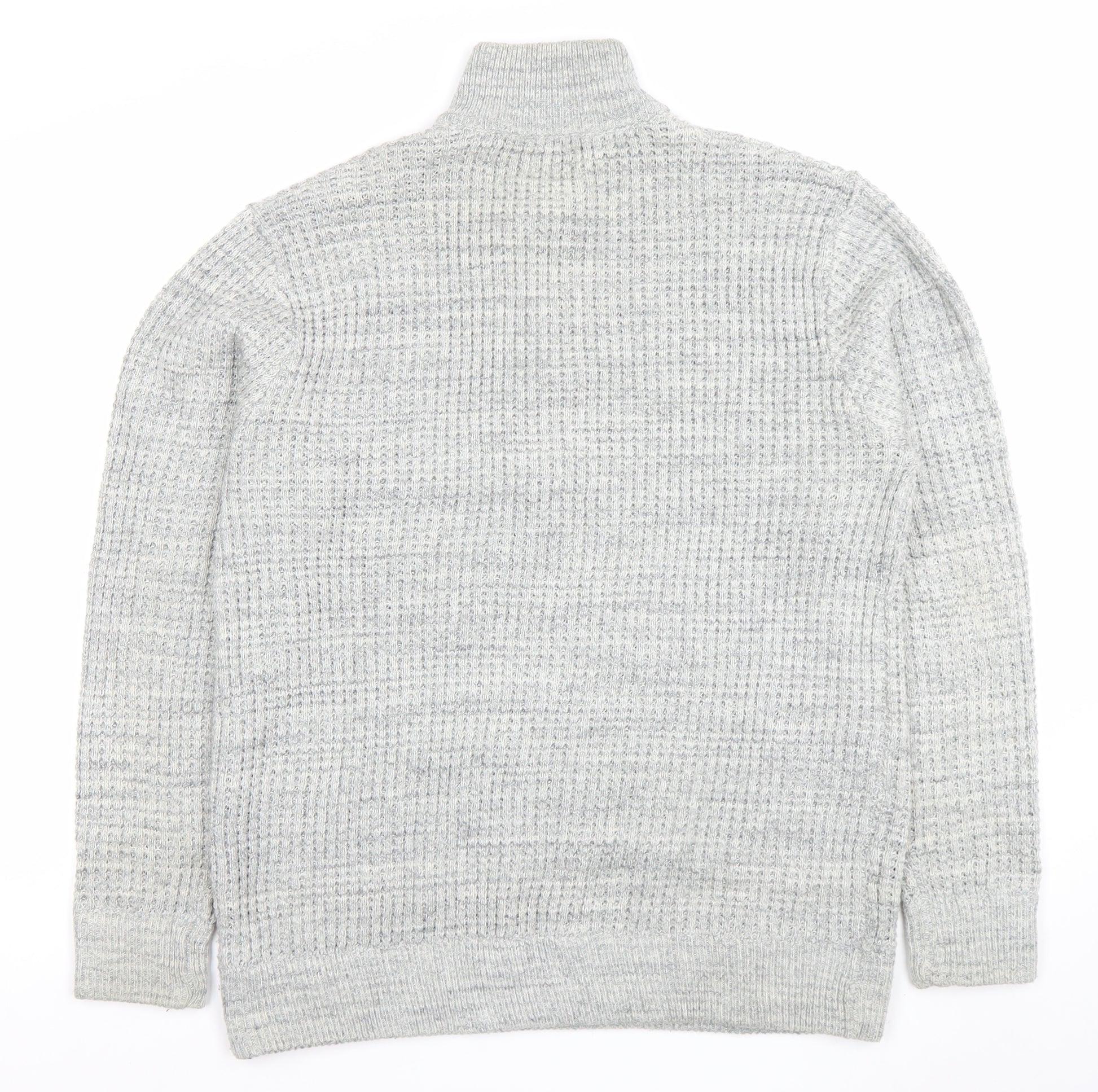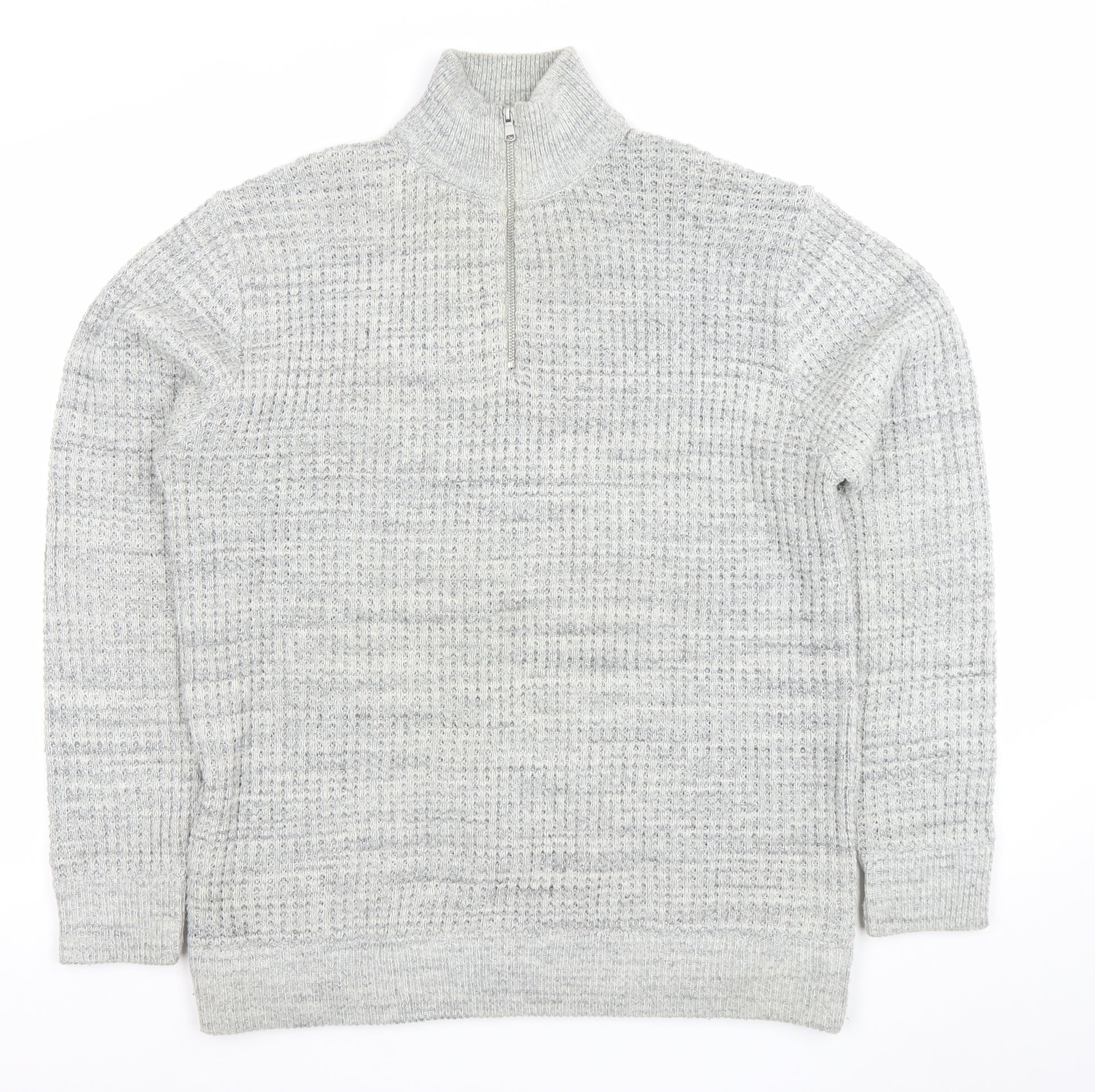Next Men's Grey XL 1/2 Zip Waffle Knit Jumper High Neck