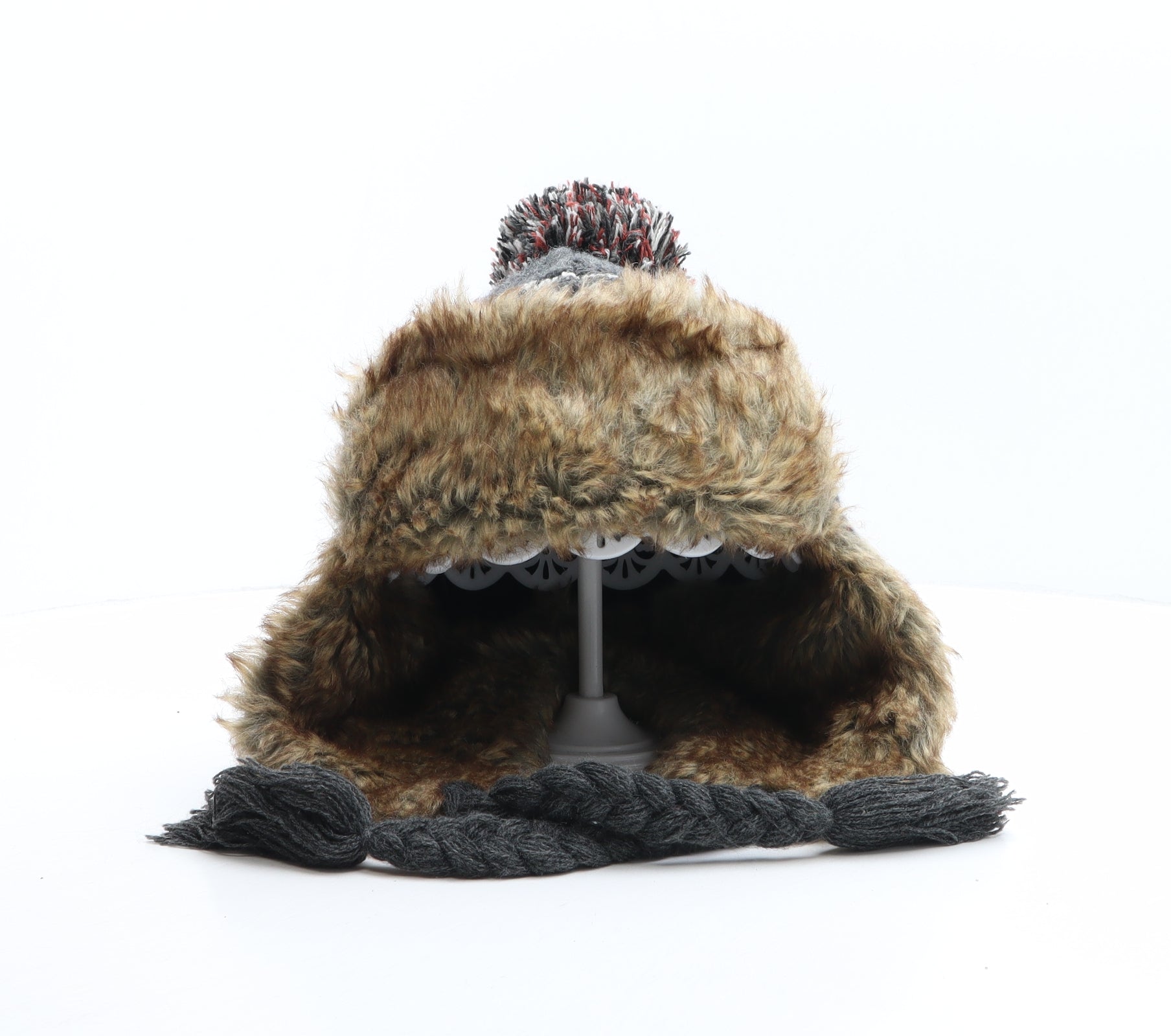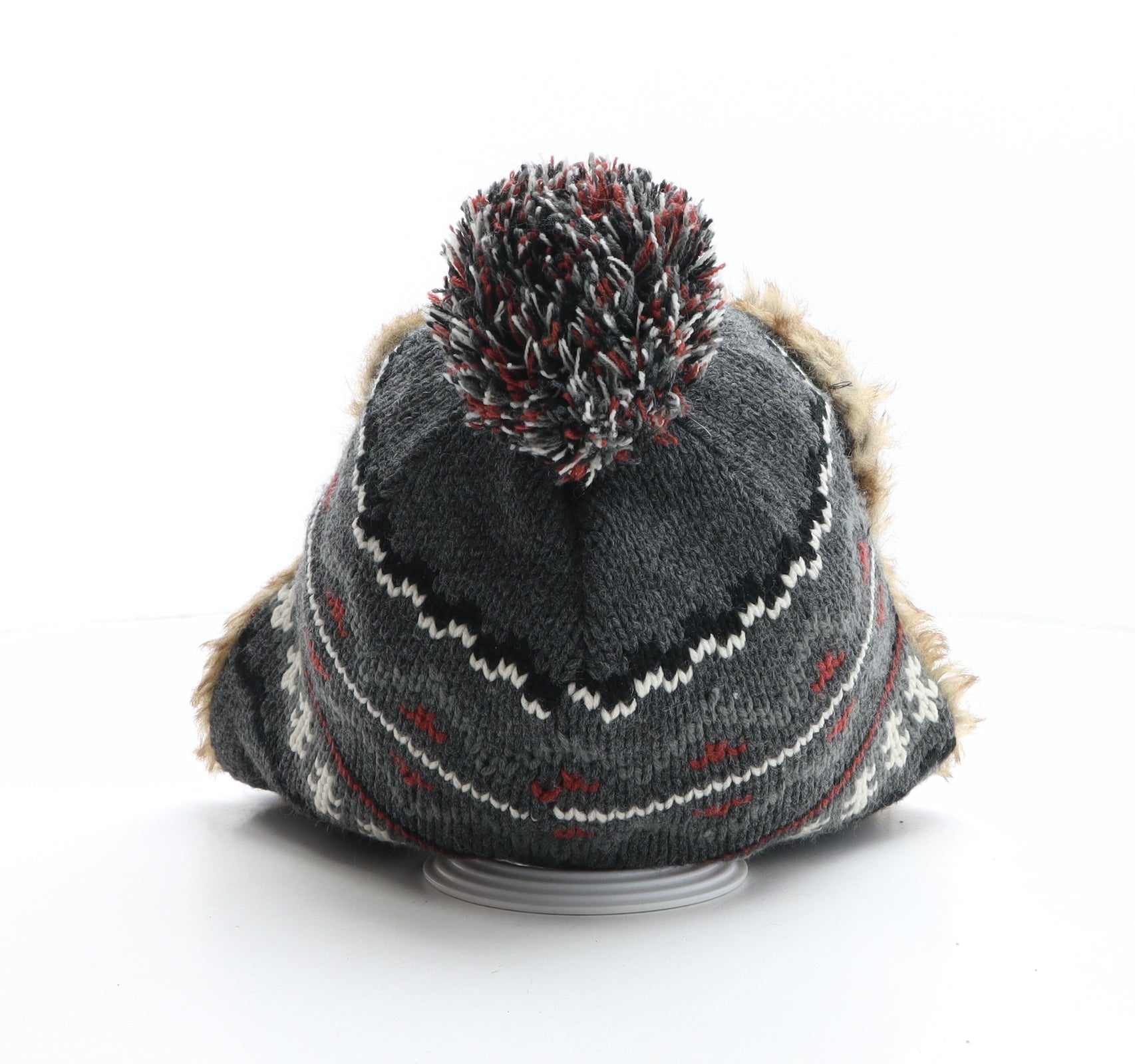 NEXT Mens Multicoloured Fair Isle Acrylic Winter Hat Size S - Faux Fur Trim