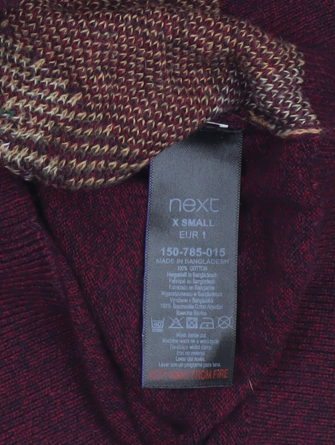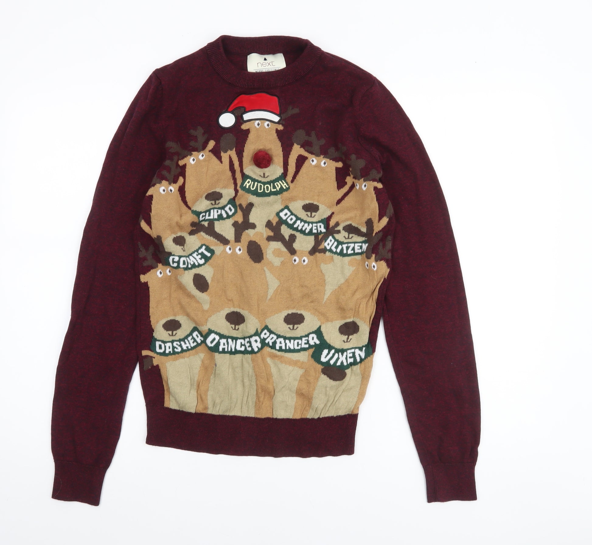 Next Men's Red Christmas Reindeer Jumper XS Crew Neck Cotton