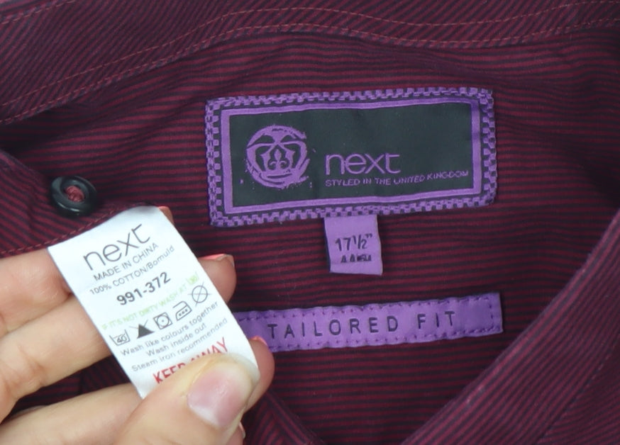 Next Men's Red Striped Tailored Fit Formal Dress Shirt 17.5in