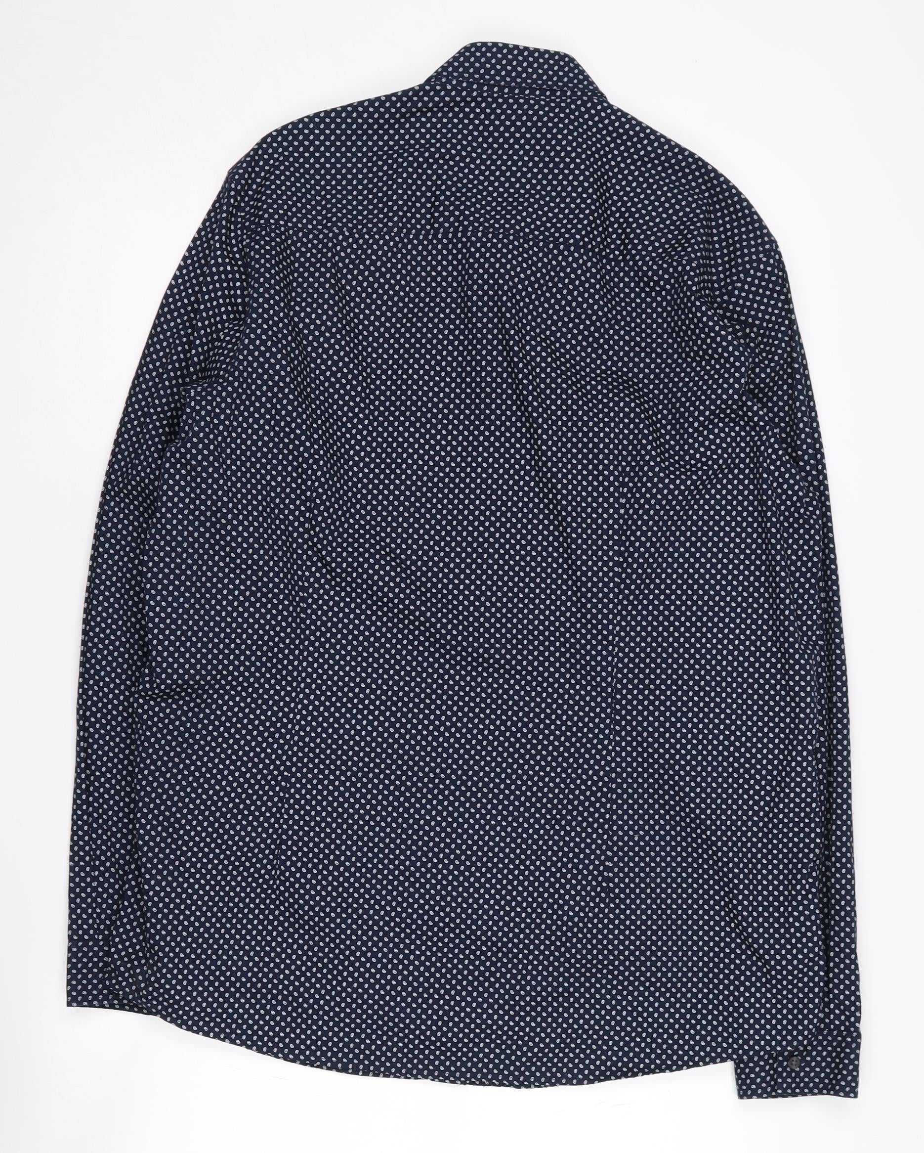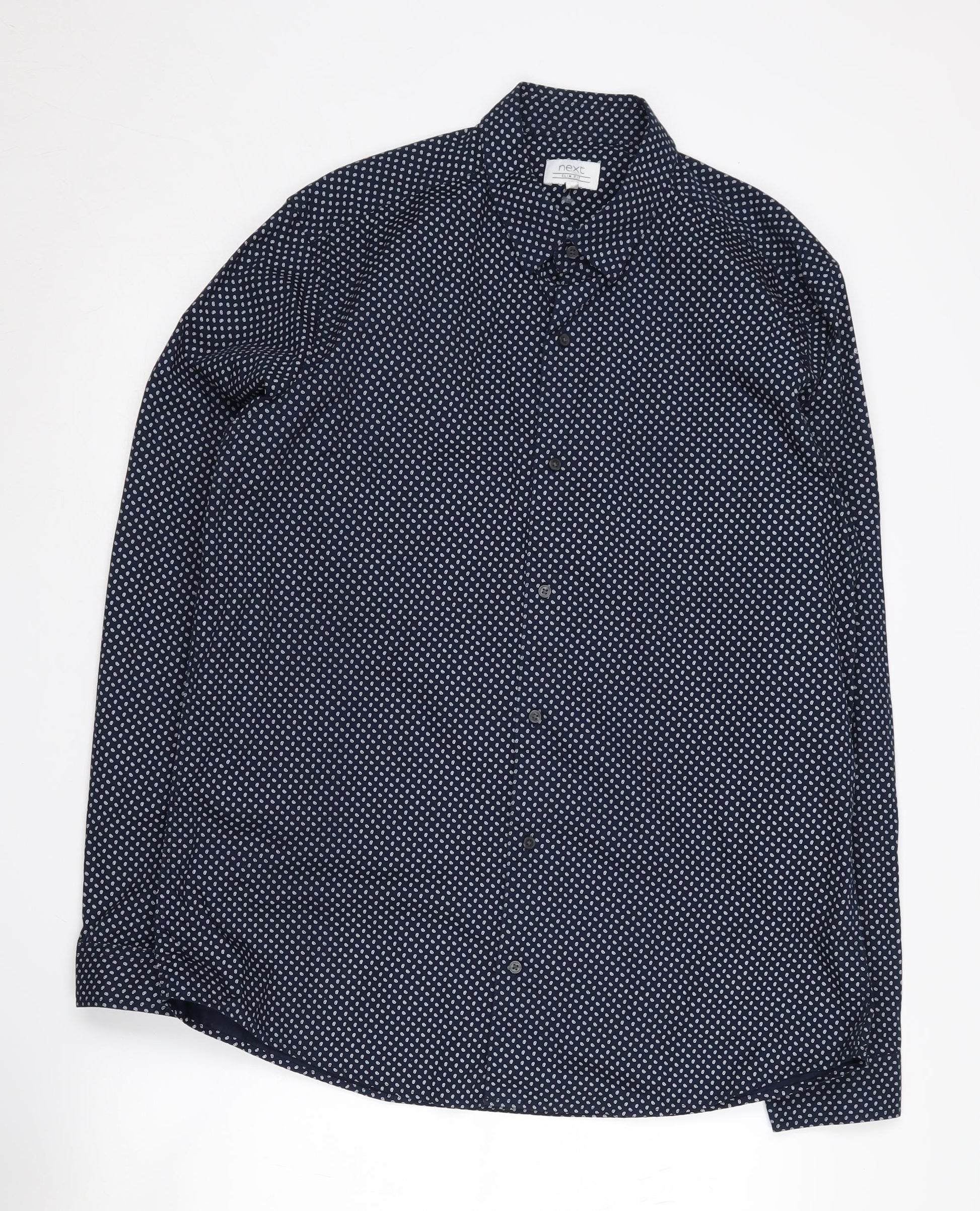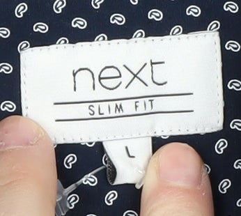 Step up your casual fashion game with this stylish Slim Fit Button-Up Shirt from Next. Designed for the modern man, this shirt features a crisp blue base adorned with an intricate paisley pattern that adds just the right amount of flair to your wardrobe. Crafted from 100% cotton, it ensures all-day comfort and breathability, making it an ideal choice for any casual occasion. The shirt's long sleeves and classic collared neckline provide a timeless look, while the slim fit offers a contemporary silhouette that's perfect for layering or wearing solo. Its button-up closure offers ease of wear, and the machine washable fabric makes it convenient for everyday use. Suitable for all seasons, this shirt will effortlessly take you from a casual day out to an evening gathering. The new with tags condition means you're getting a fresh piece straight into your wardrobe. Don't miss the opportunity to own this versatile piece from Next, designed to enhance your style while keeping comfort in mind.