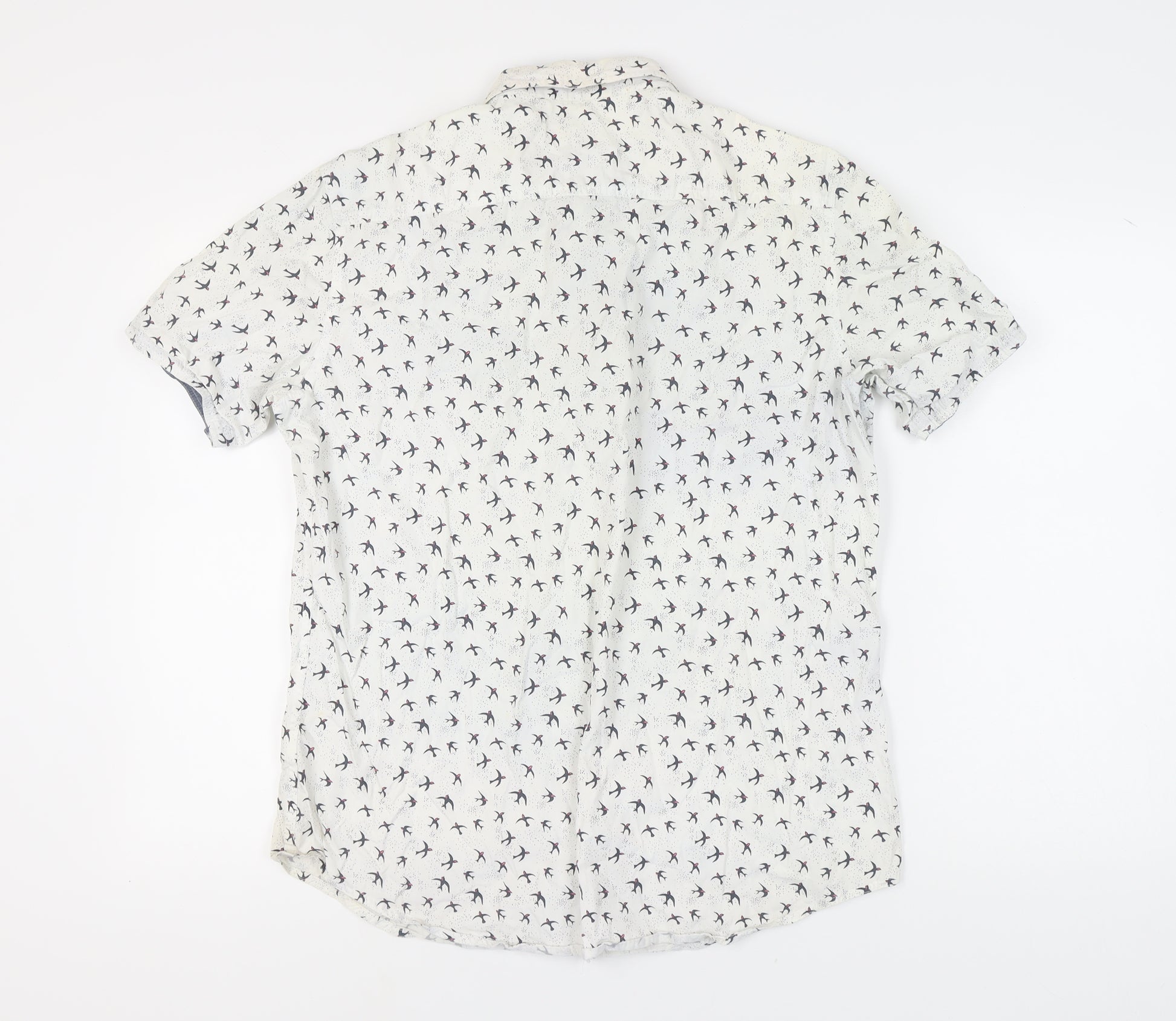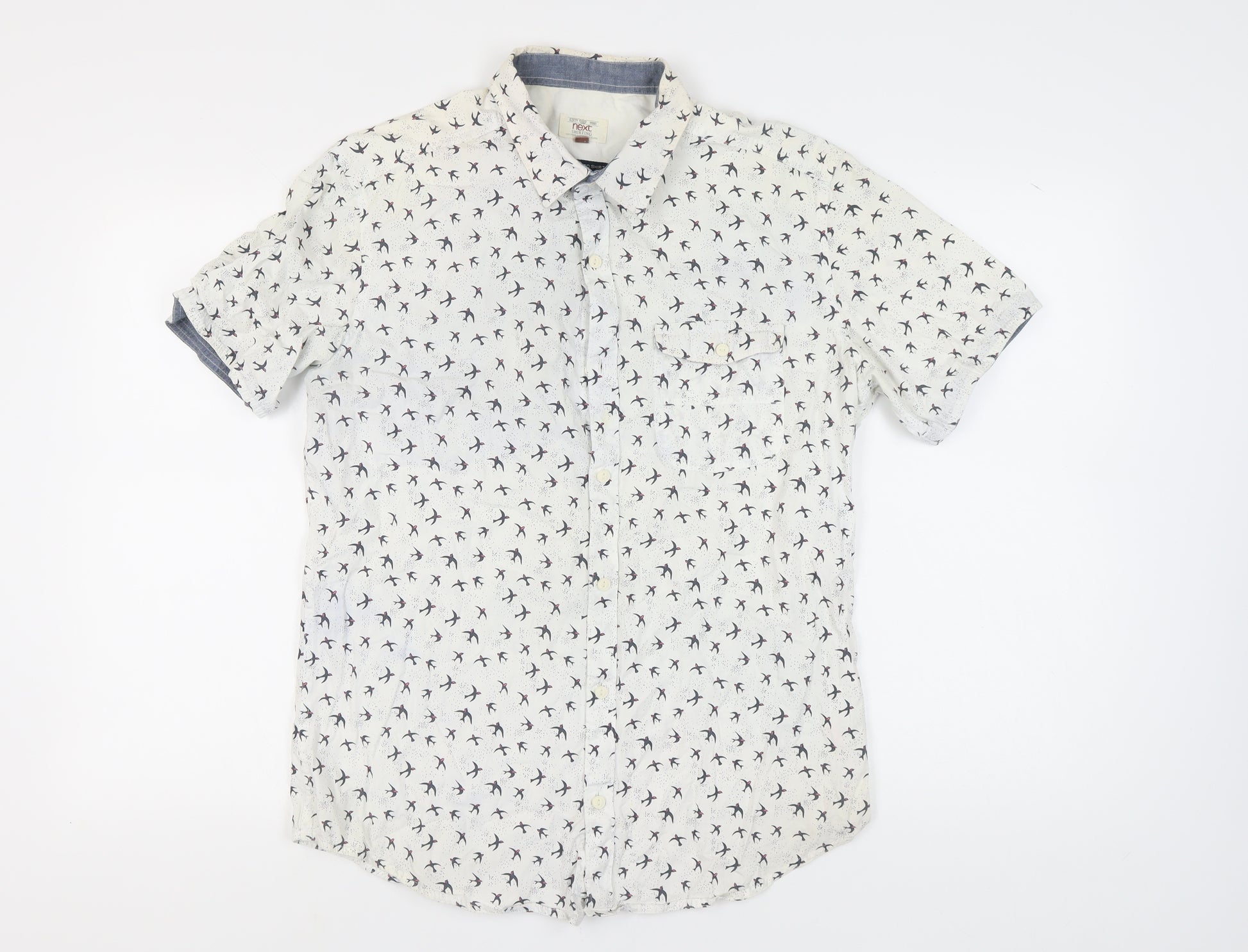 Next Men's White Bird Print Shirt, L Size, Short Sleeve