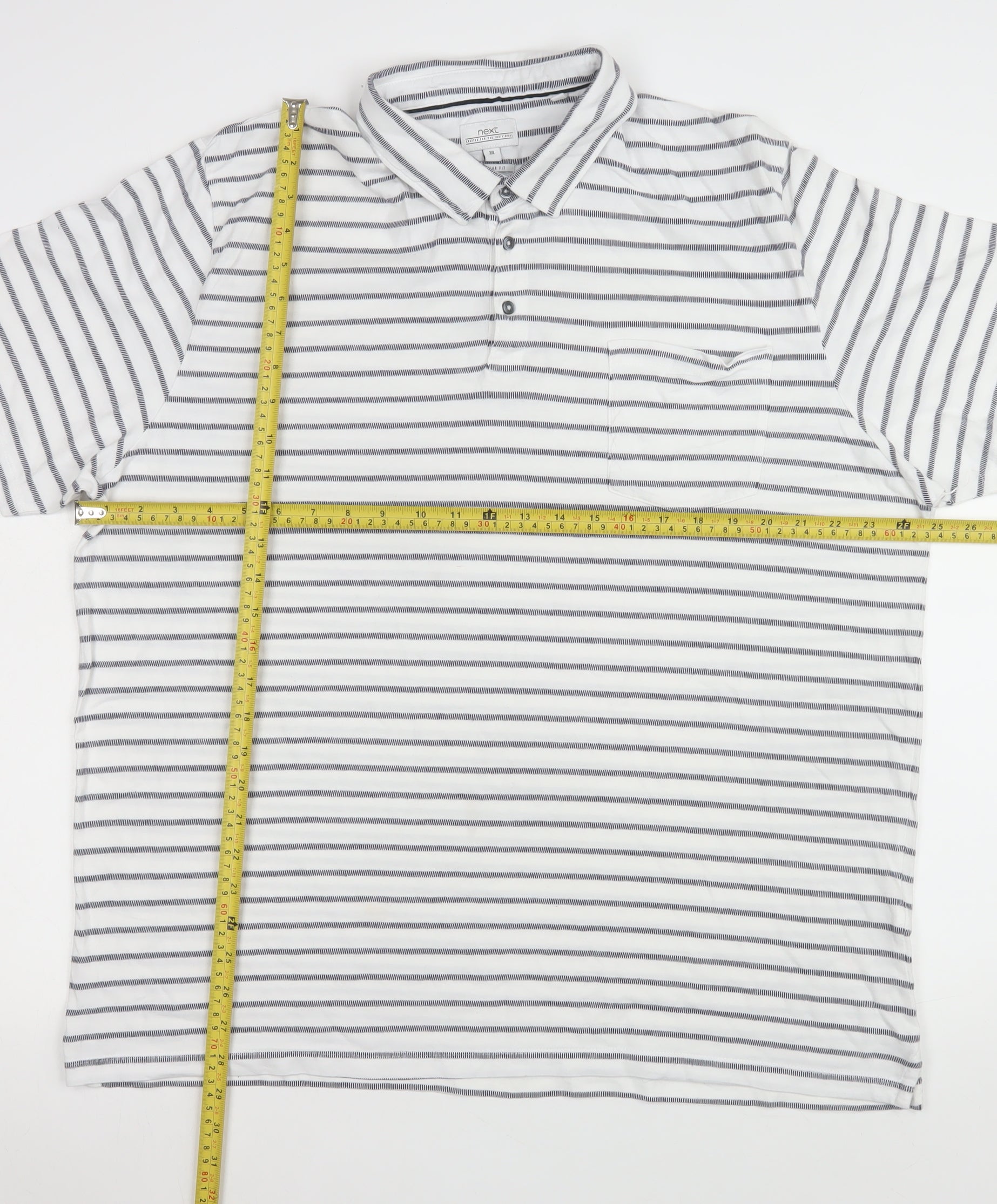 Next Men's White Striped 3XL Cotton Short Sleeve Polo Shirt