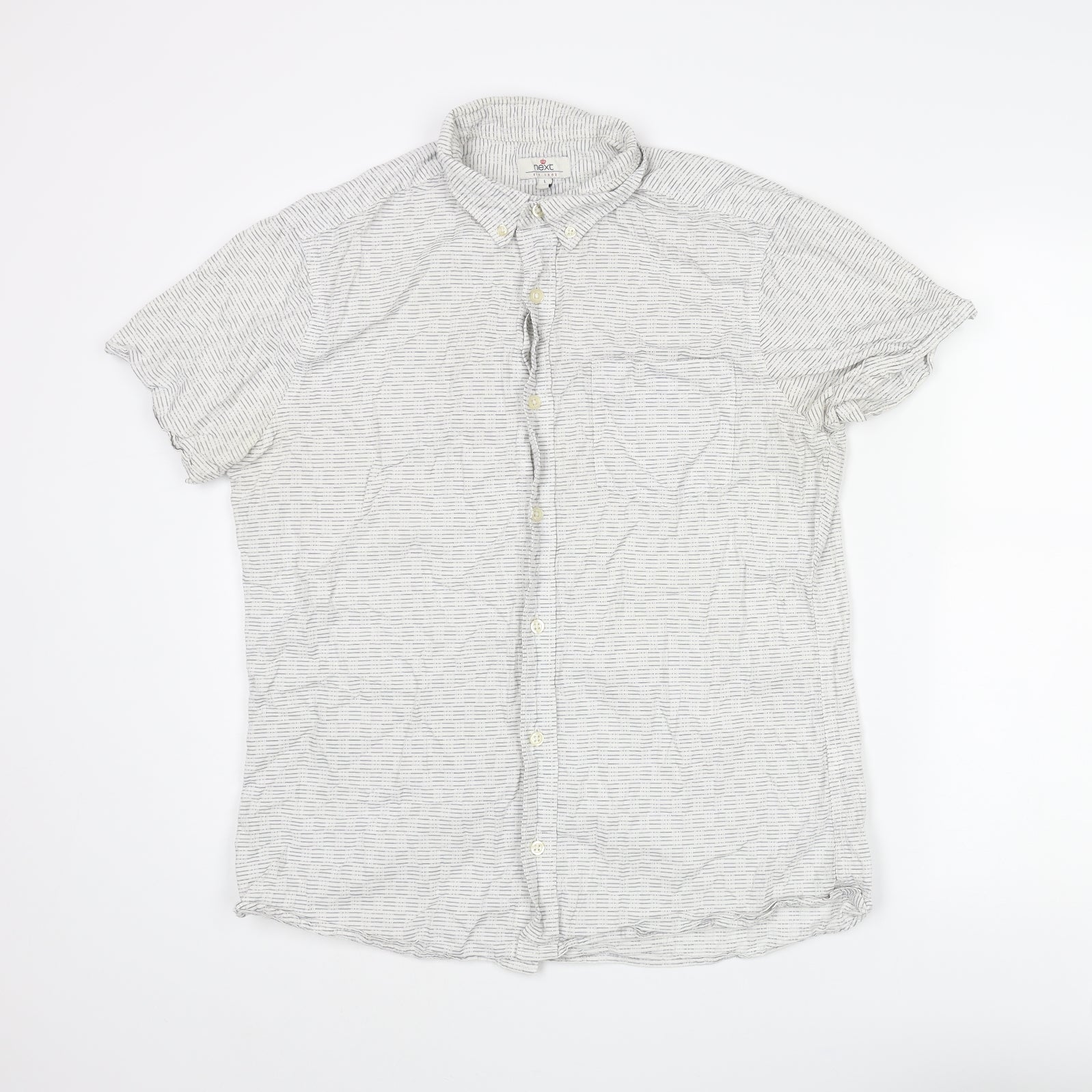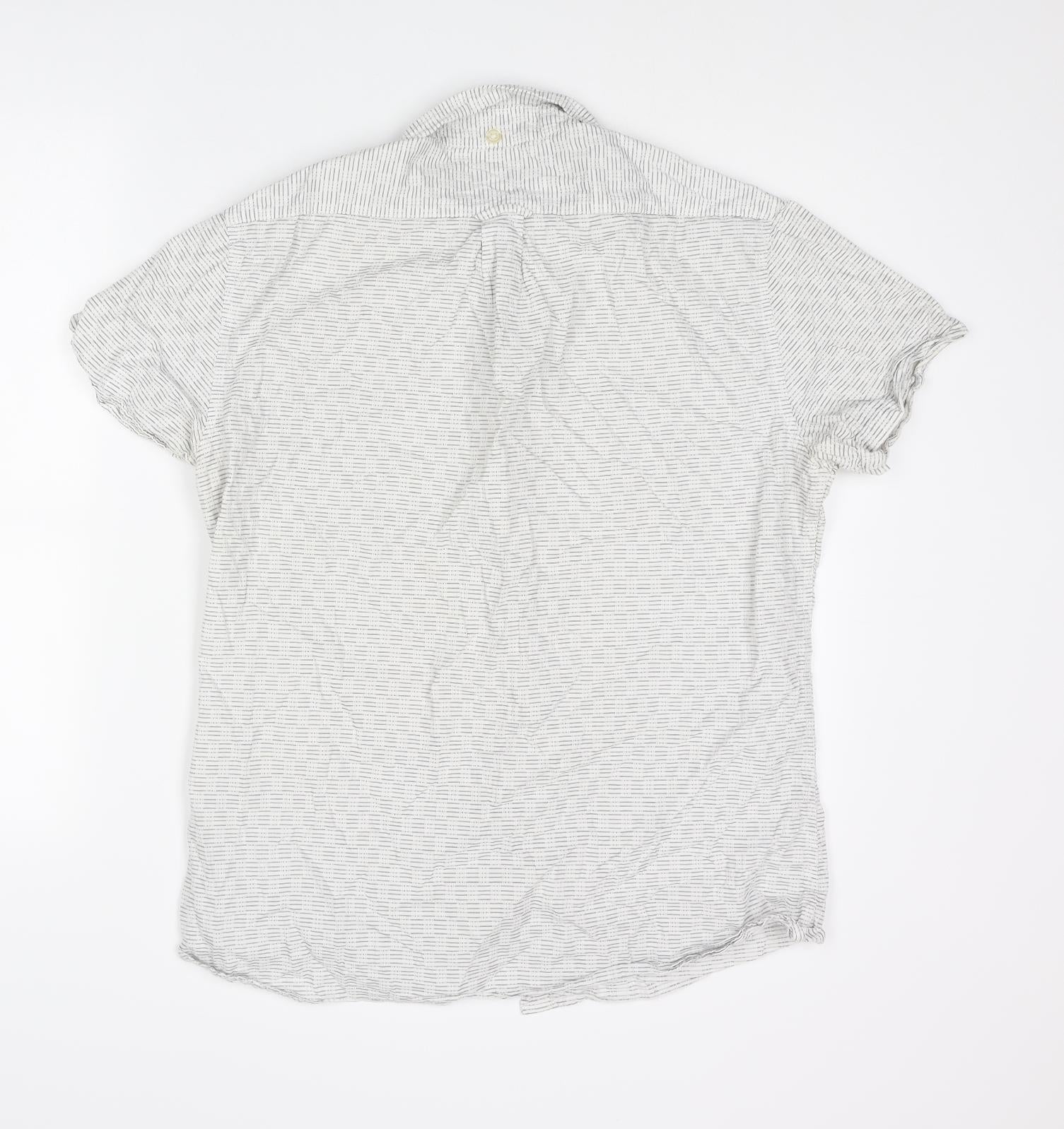 Mens White Striped Cotton Button-Up Size L Collared Button