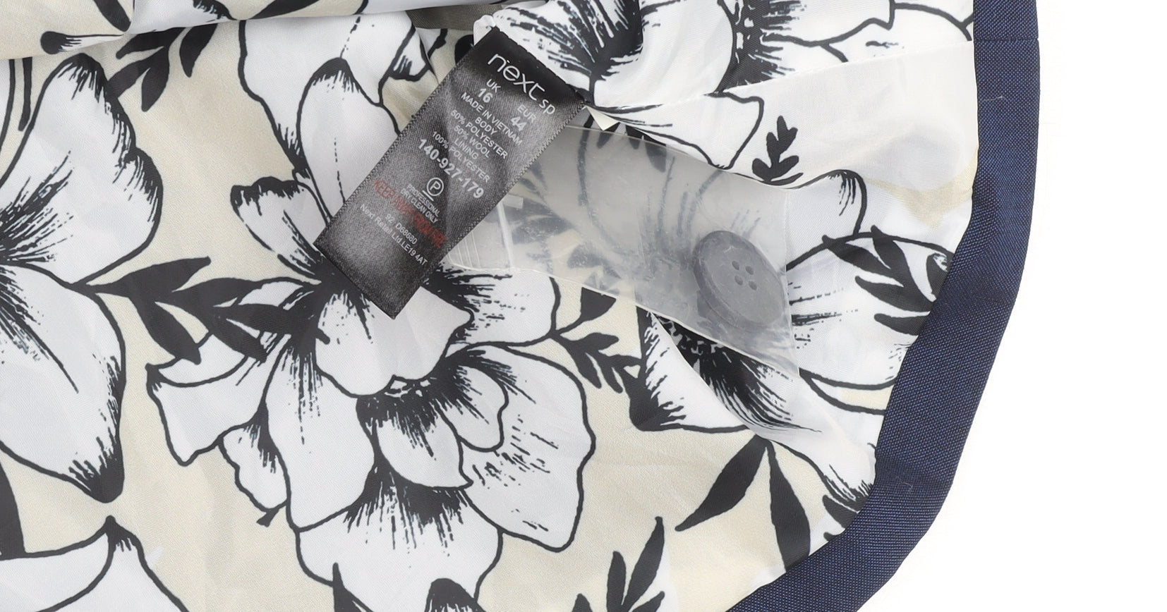 Elevate your tailored wardrobe with this elegant blue blazer from Next Tailoring, designed to exude modern sophistication and everyday versatility. Crafted from a durable yet comfortable woven blend of 80% polyester and 20% viscose, this jacket provides a structured silhouette that maintains its shape throughout the day. The regular fit ensures a flattering profile suitable for both office environments and formal occasions. Featuring a smooth polyester lining for added comfort, this single-breasted blazer fastens with a single front button and includes a classic notch lapel, offering a timeless professional aesthetic. The jacket is finished with front flap pockets, enhancing its tailored design while maintaining functionality. Its crisp navy tone pairs effortlessly with neutral or coordinating separates, making it a versatile addition to your workwear collection. Ideal for pairing with skirts, trousers, or dresses, this jacket transitions seamlessly from day meetings to evening events. Suitable for business, formal, or workwear occasions, it complements your wardrobe with understated elegance. The piece is in excellent pre-loved condition, showing minimal signs of gentle use and has been well cared for. Perfect for the upcoming spring and autumn seasons, the breathable blended fabric ensures comfortable wear in varying temperatures. Whether styled over a blouse or layered as part of a trouser suit, this Next Tailoring blazer delivers classic charm with a modern polished finish — a dependable essential for the stylish professional seeking both comfort and refinement in her wardrobe staples.