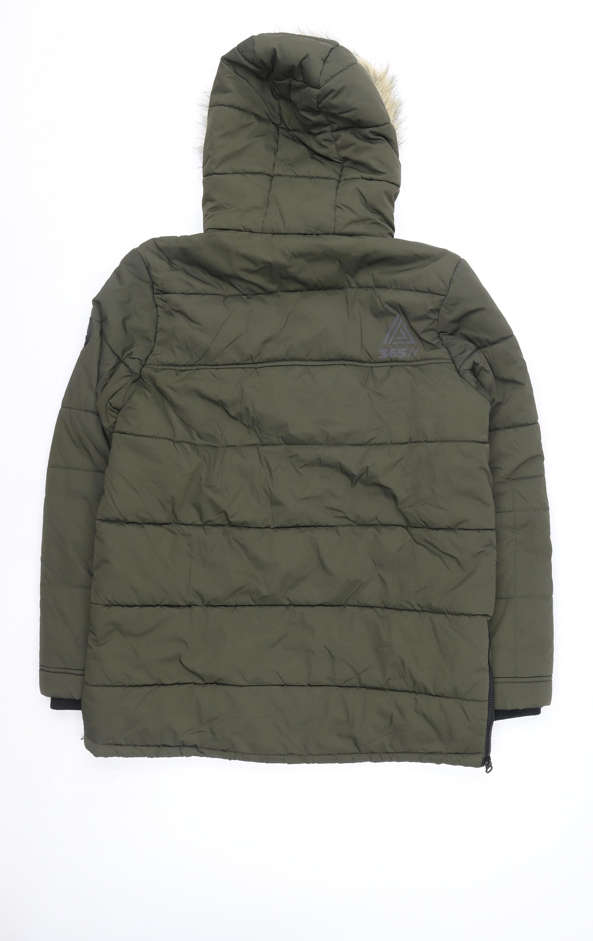 Next Teens Green Faux Fur Hooded Parka Coat Size 14 Years
