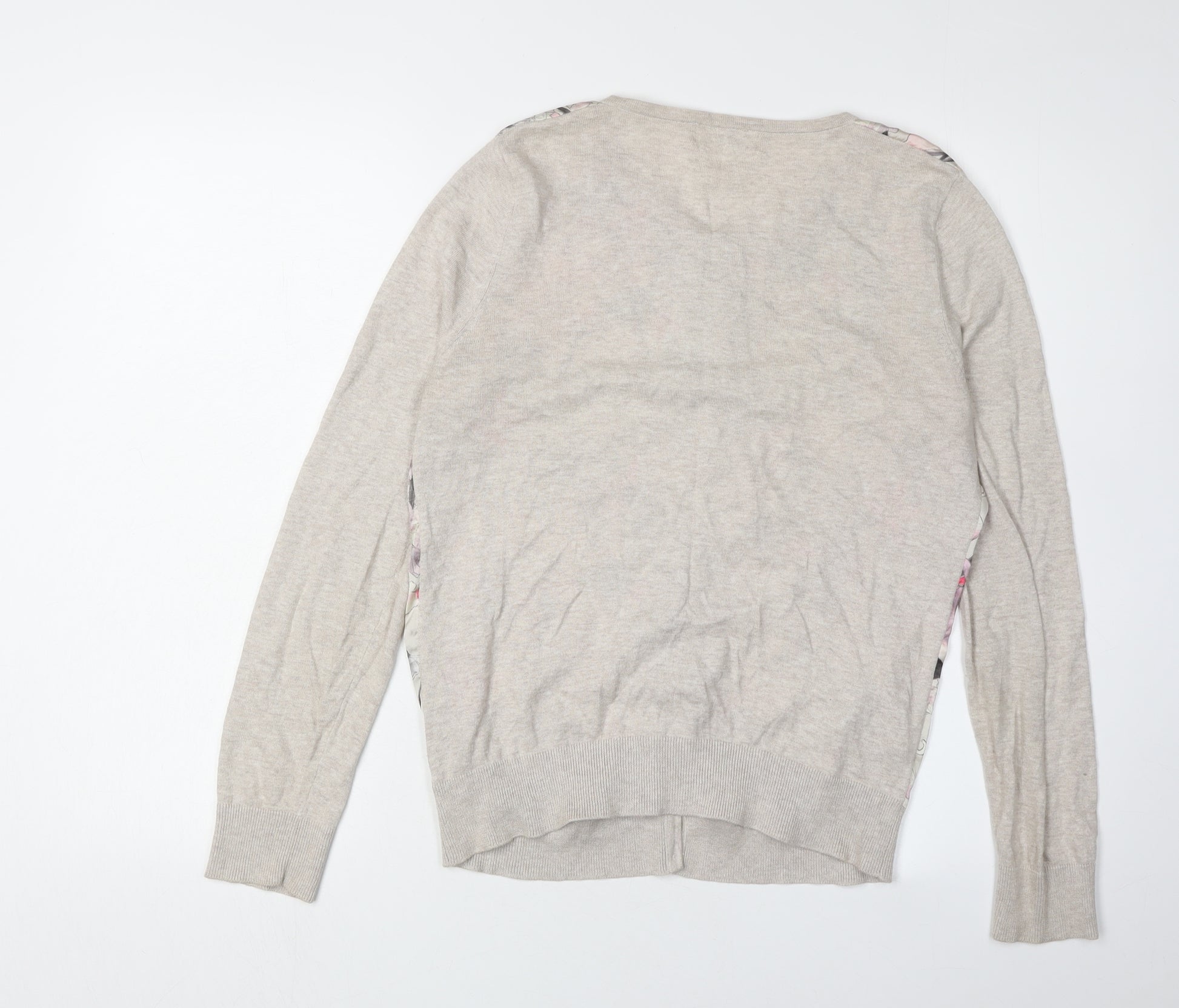 Next Women Beige Floral Cardigan Crew Neck Size 12