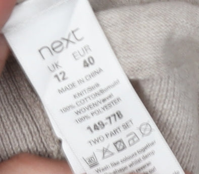 Elevate your wardrobe with this sophisticated women's cardigan from Next. Perfect for all seasons, this beige floral cardigan is crafted from a breathable cotton knit with polyester detailing, ensuring both comfort and style. Its long sleeves and crew neck offer a classic look, ideal for casual occasions. Featuring a button accent, this cardigan adds a touch of elegance to any outfit. Its regular size 12 fit makes it a versatile addition to your wardrobe. Pair it with jeans for a laid-back look or dress it up with tailored trousers for a more polished appearance. Machine washable and in excellent condition, this cardigan is ready to provide you with endless stylish options. Don't miss the opportunity to own this beautiful piece at an affordable price.