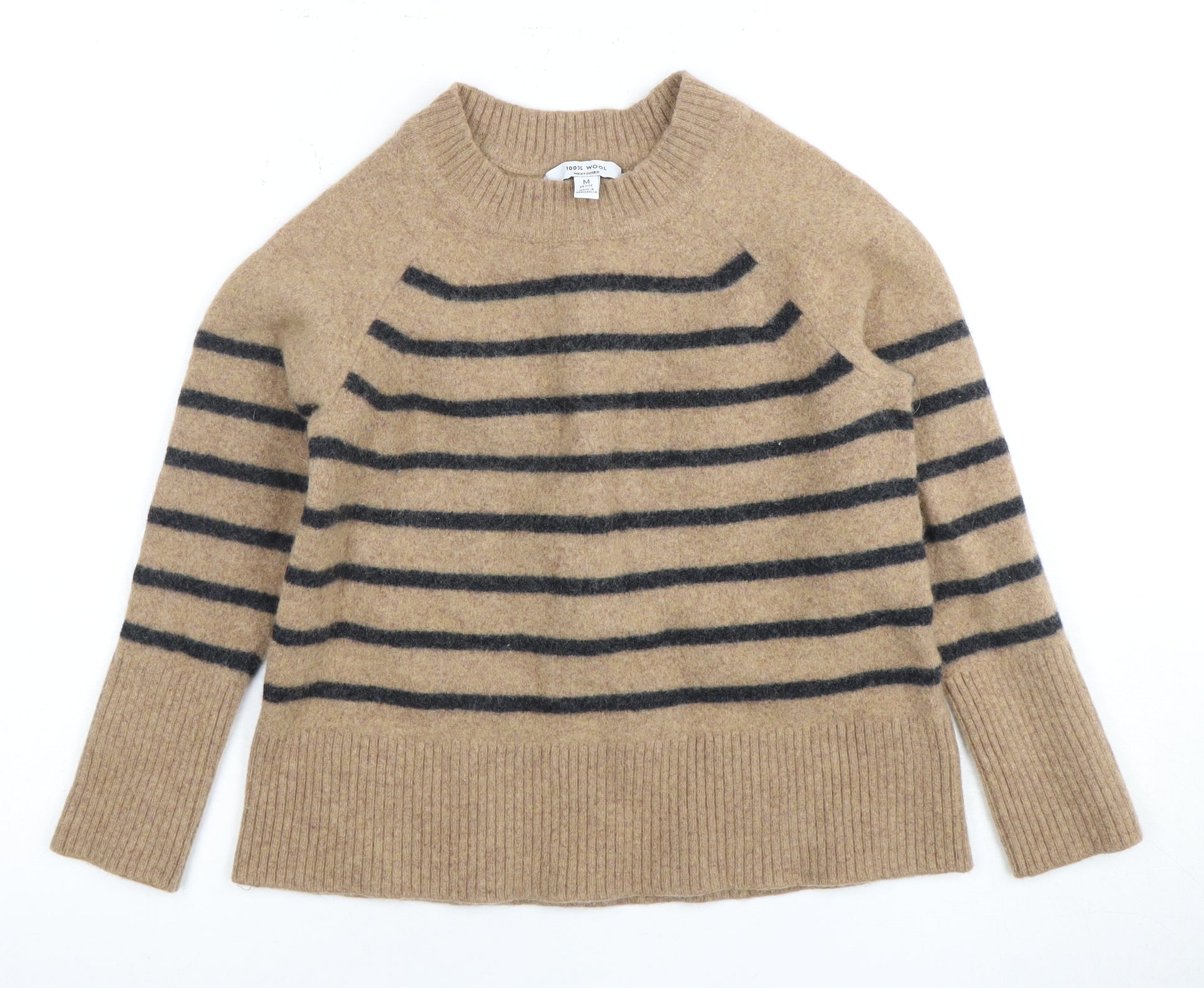 Step into style with the Next Women's Beige Striped Wool Pullover Jumper in size M. This chic pullover features a timeless crew neck design and long raglan sleeves, offering a classic yet casual look perfect for any occasion. Crafted from 100% wool, this jumper ensures warmth and comfort during the crisp autumn and winter months.The beige color is complemented by dark stripes, creating a sophisticated pattern that adds a touch of elegance to any outfit. Its chunky-knit texture provides a cosy feel, making it an excellent choice for layering. The medium size in a petite fit offers a flattering silhouette, tailored to enhance your natural shape.Whether you're heading out for a casual day out or enjoying a relaxing night in, this jumper serves as a versatile addition to your wardrobe. It's machine washable, allowing for easy care without compromising quality. The absence of visible wear or damage ensures the jumper is in excellent condition, making it a valuable find at an affordable price.Embrace the blend of style and functionality with this striped wool pullover. Ideal for those looking to combine warmth with elegance, this jumper is a must-have for fashion-forward individuals seeking comfort and class. Add it to your collection and enjoy the luxurious feel of wool while staying on-trend throughout the season.