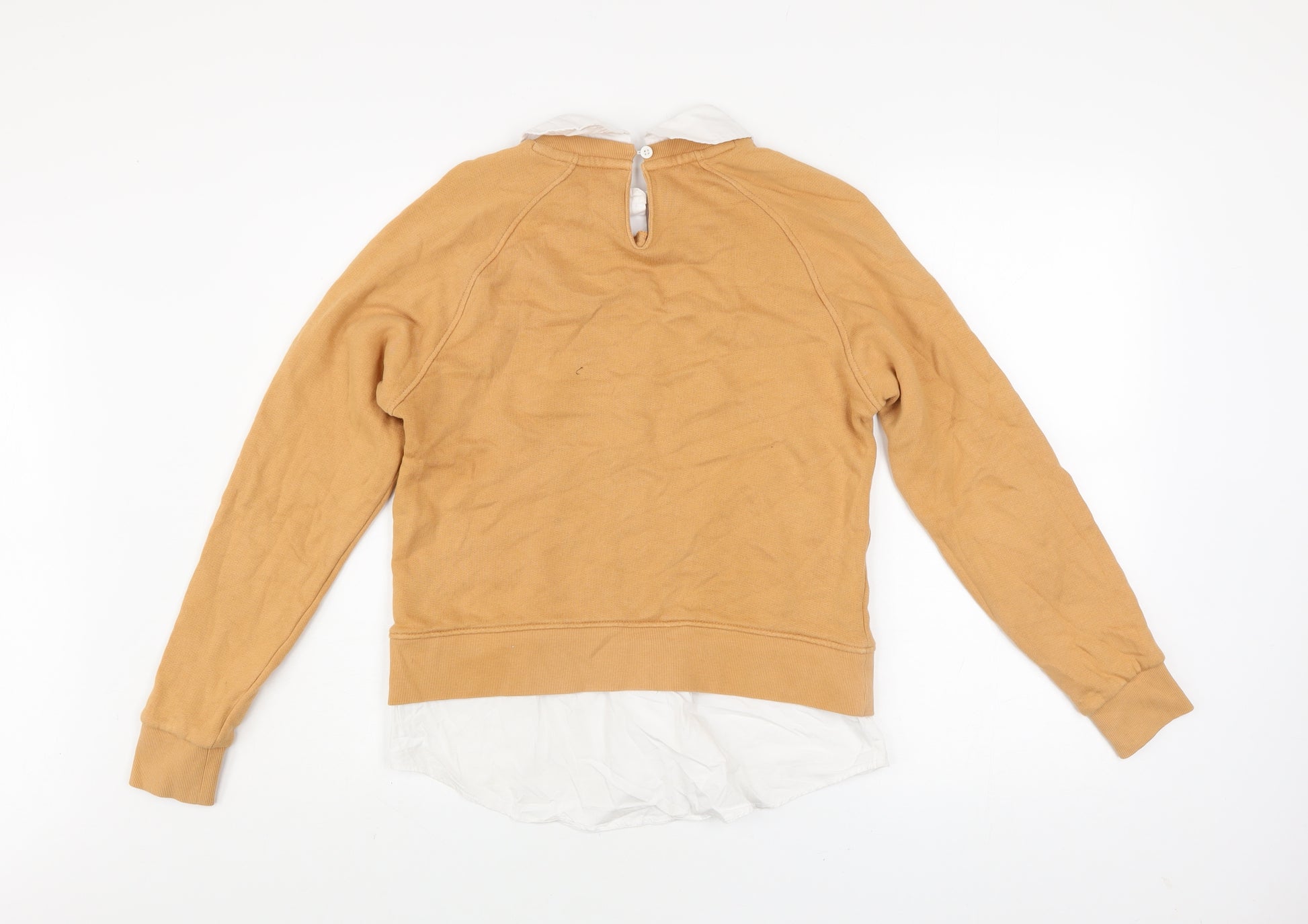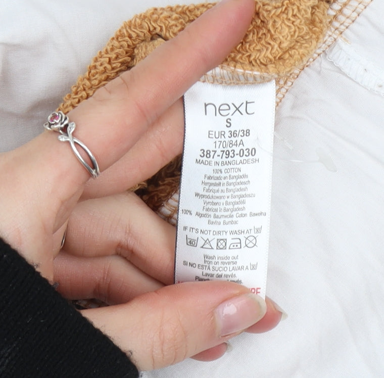 Next Women Beige Varsity Pullover Sweatshirt S 100% Cotton Collared