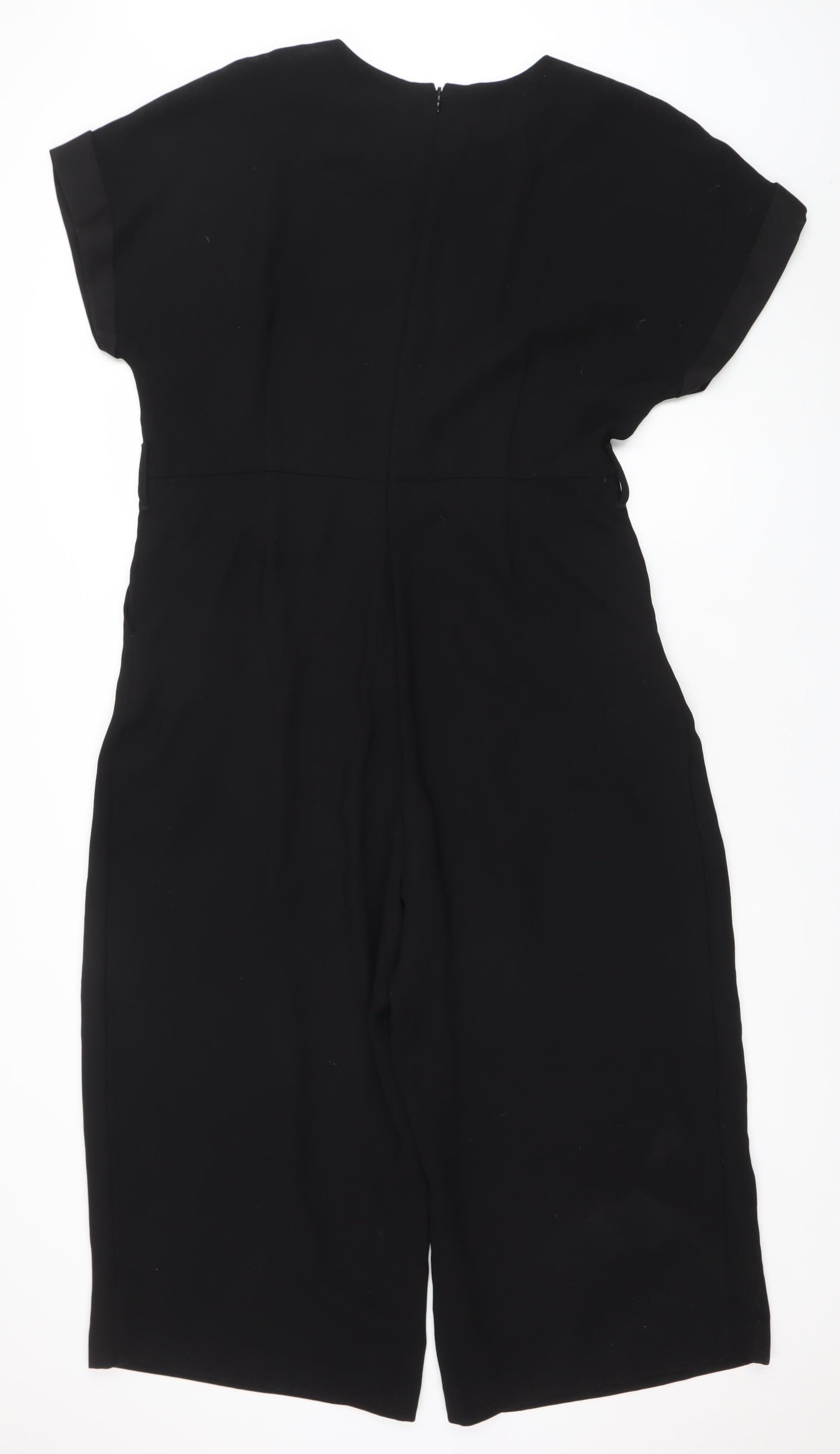 Next Women Black Jumpsuit Size 16 Regular Fit Short Sleeve Zip Back