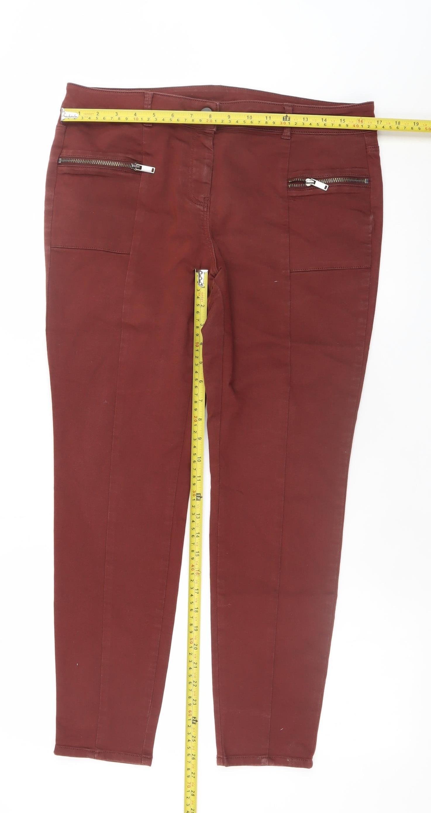 Step into comfort and style with these stunning brown skinny jeans from Next. Designed for women who value both fashion and practicality, these jeans perfectly balance sophistication with everyday wearability. Crafted from a premium blend of 67% cotton, 30% polyester, and 3% elastane, the fabric provides a flattering slim fit while maintaining excellent stretch and comfort through the day. The warm brown tone adds a touch of autumnal charm, making these jeans ideal for pairing with chunky knits, stylish blouses, or casual tees. The mid-rise waist gives a smooth, comfortable shape that complements a variety of body types, offering a modern silhouette without sacrificing ease of movement. Featuring a sleek zip and button closure, these jeans are designed with functional front zipped pockets that add contemporary edge and practicality. Their 5-pocket design ensures ample storage for small essentials, while the dark wash finish enhances their versatile appeal, suitable for both day and evening wear. Perfect for autumn and winter, these jeans are crafted in Turkey with Next’s signature quality construction for long-lasting wear. Machine washable for easy care, they maintain their shape and colour beautifully after repeated washing. Ideal for smart-casual occasions or relaxed weekends, they can be styled effortlessly with trainers, boots, or heels depending on the look you want to create. These jeans are in excellent pre-owned condition with minimal signs of wear and no visible faults, ensuring you’ll look great wherever you go. Add a timeless piece to your wardrobe that combines elegance, durability, and comfort in one. With their flattering slim fit, durable stretch fabric, and classic brown colour, these Next women’s jeans are a wardrobe essential that transcends seasons, effortlessly enhancing your casual and smart outfits alike.
