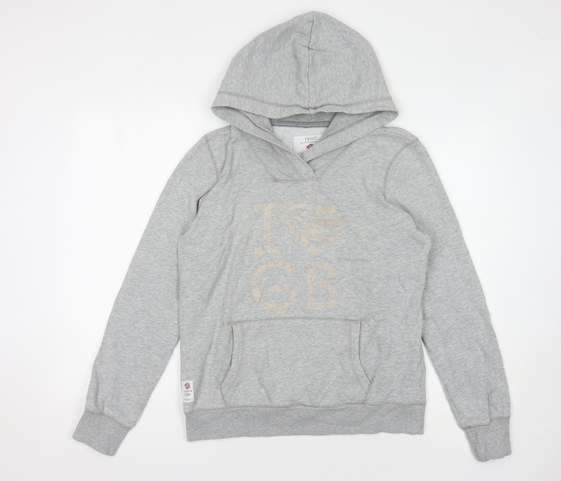Embrace sporty chic with this grey cotton blend hoodie from Next's exclusive Team GB collection. Perfect for women who love comfort with style, this hoodie features a cosy hood and a stylish pullover design. Made from a breathable and lightweight material, it's ideal for all seasons, whether you're out for a jog or relaxing at home. The simple yet iconic Team GB design in a soft grey hue adds a subtle but classy British flair. With long sleeves and a relaxed fit, it's a versatile addition to your casual wear collection. Easy to care for, this hoodie promises both durability and style. A must-have for sports enthusiasts and fashion-savvy individuals alike.