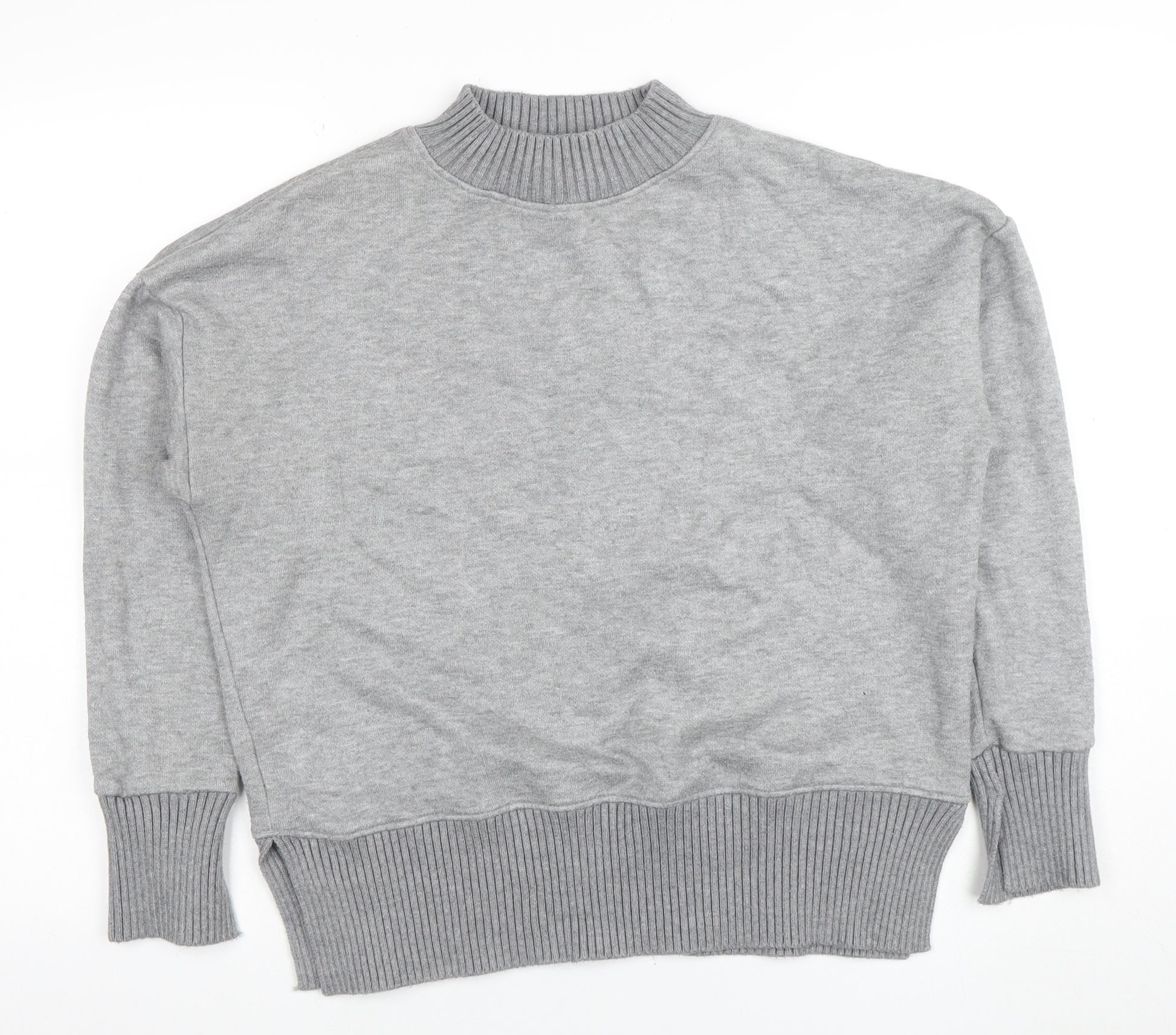 Women Grey Mock Neck Knit Jumper M Relaxed Fit Pullover