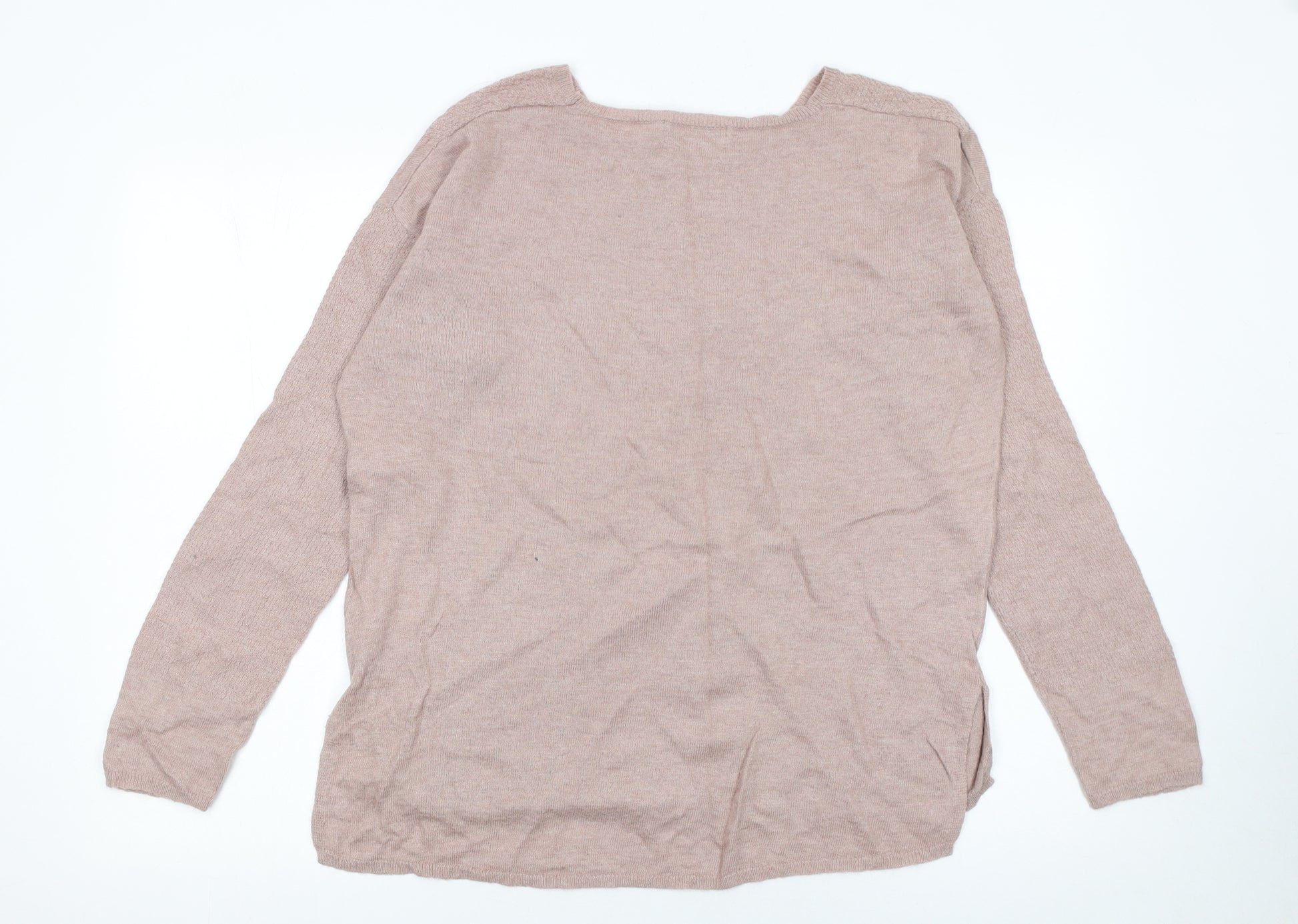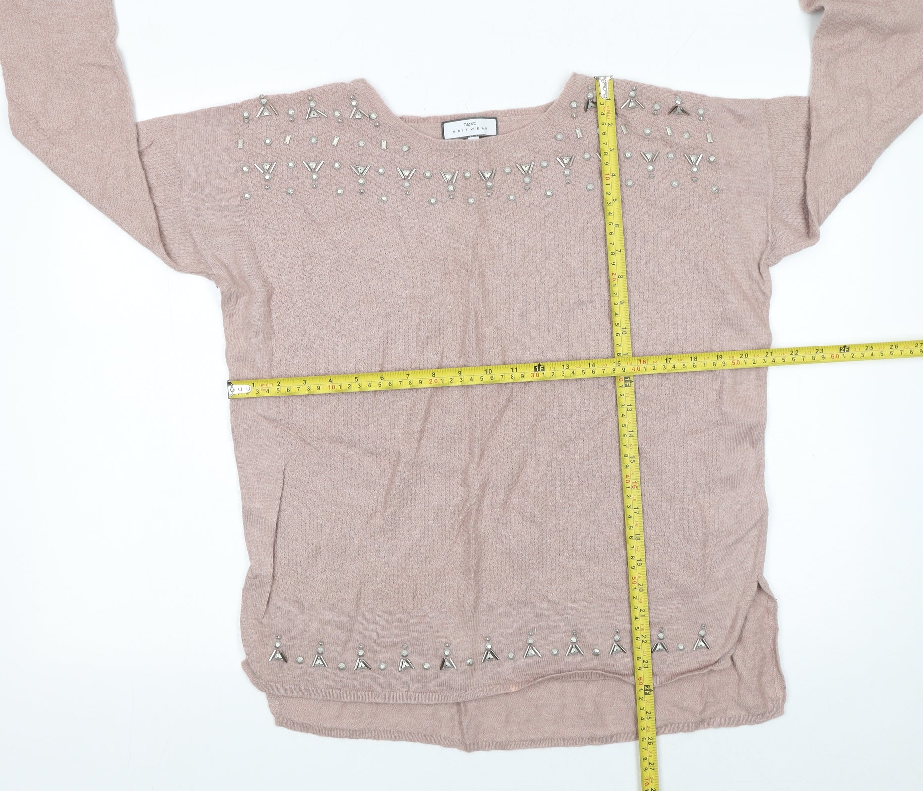 Next Women Pink Beaded Crew Neck Long Sleeve Pullover Jumper Size 12