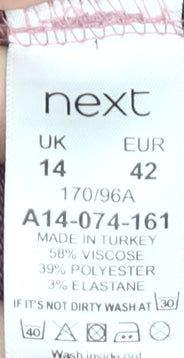 Experience comfort and effortless style with this elegant women's top from Next. Designed in a sophisticated purple hue, this top is perfect for your wardrobe staple. Featuring a flattering round neckline and long sleeves, it offers a relaxed fit that is ideal for any casual occasion. The material blend of viscose, polyester, and elastane ensures a soft and breathable fabric that's easy to wear and care for. Constructed with solid colour and minimal detailing, it remains versatile and timeless. Perfect for layering or wearing on its own, it pairs beautifully with jeans or skirts for a polished look. Ideal for those who appreciate quality and simplicity, this top is machine washable, making it a practical addition to your fashion collection. With minimal signs of wear, it remains in very good condition, ready to bring a touch of elegance to your everyday outfit.
